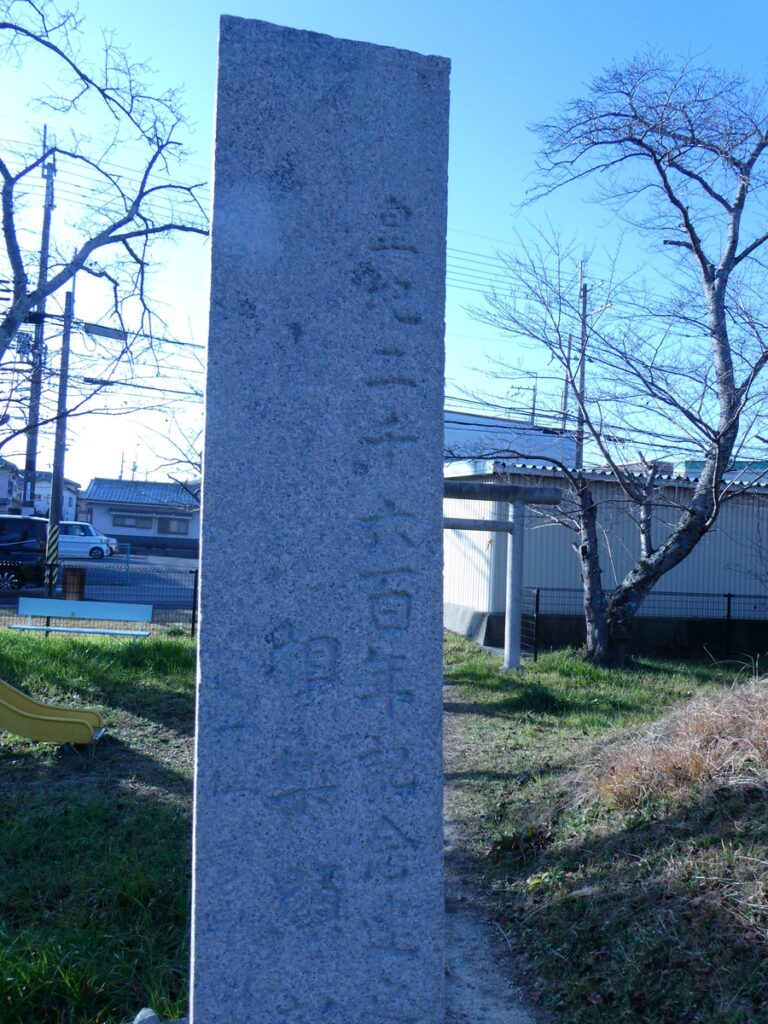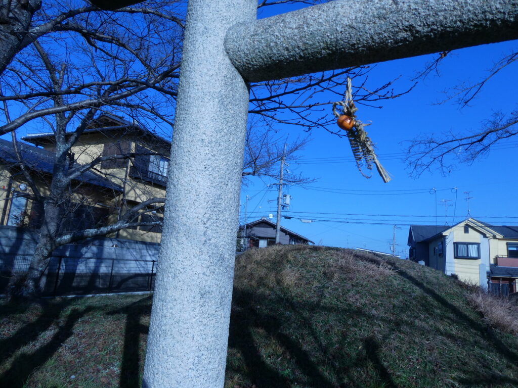 この公園の表側入り口は、交通量の多い道路である。全然神社っぽくないけれど驚くことに鳥居がたっていて小さな注連縄飾りが揺れている。ピカピカの御墓と注連縄飾り、この場所が大切にされている証拠なのかもしれない。