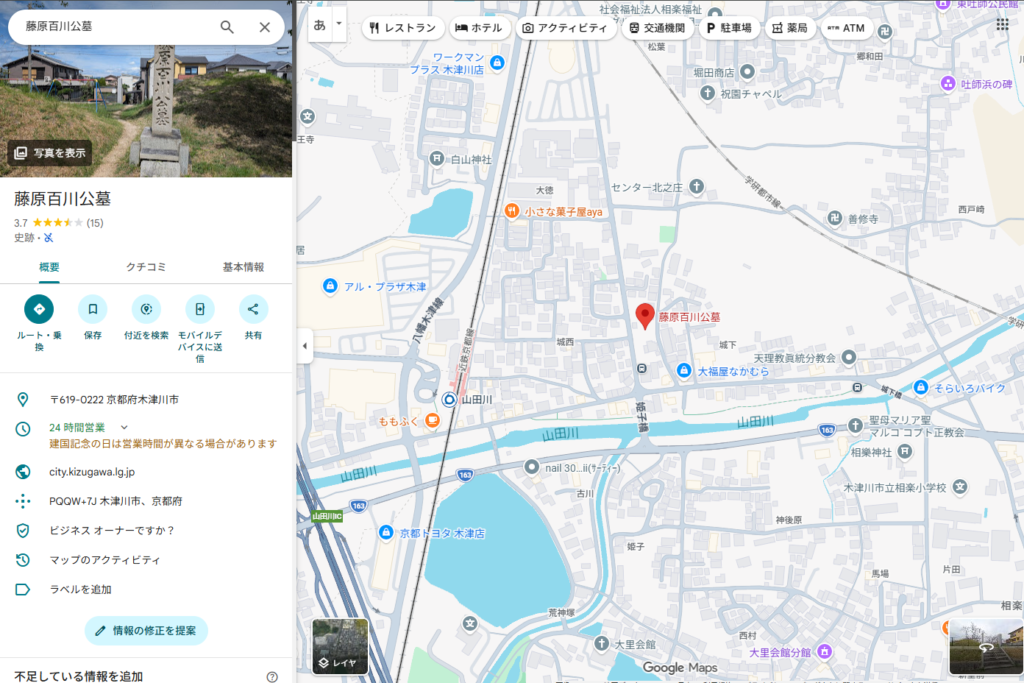 Googleマップ:藤原百川の墓