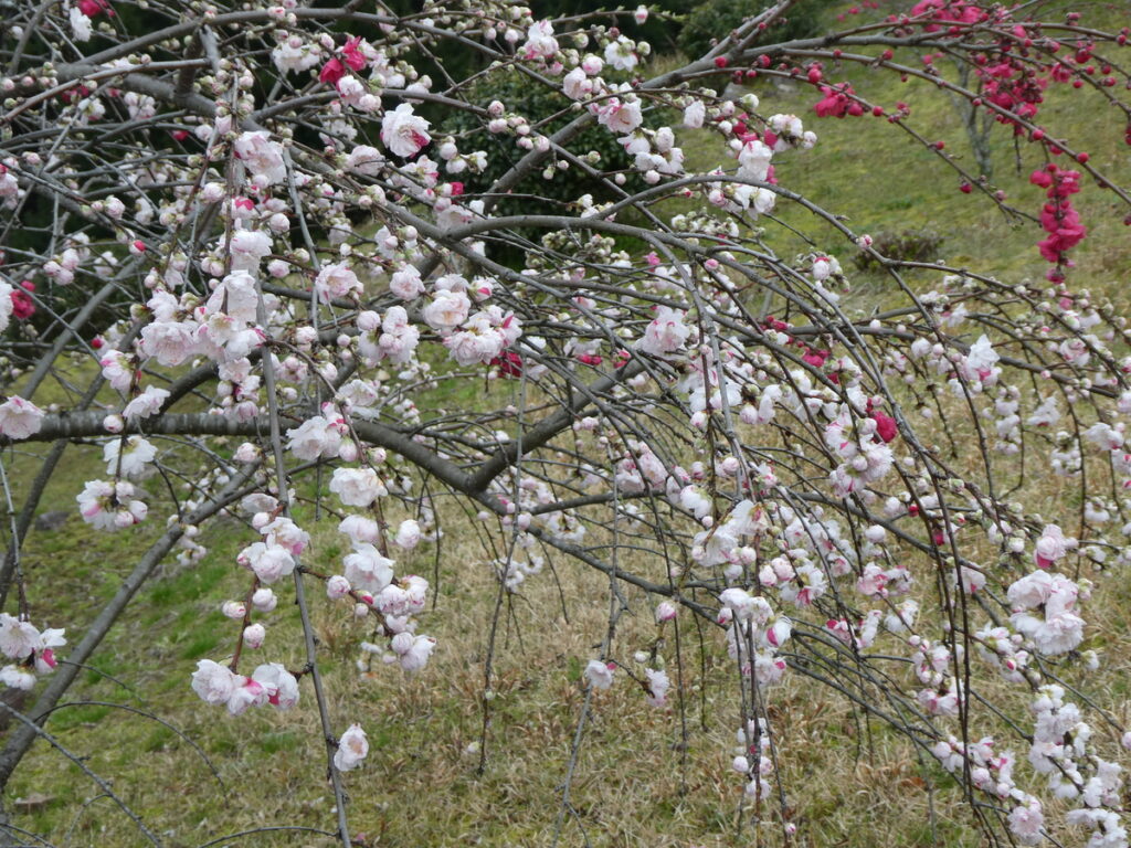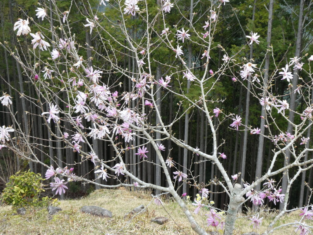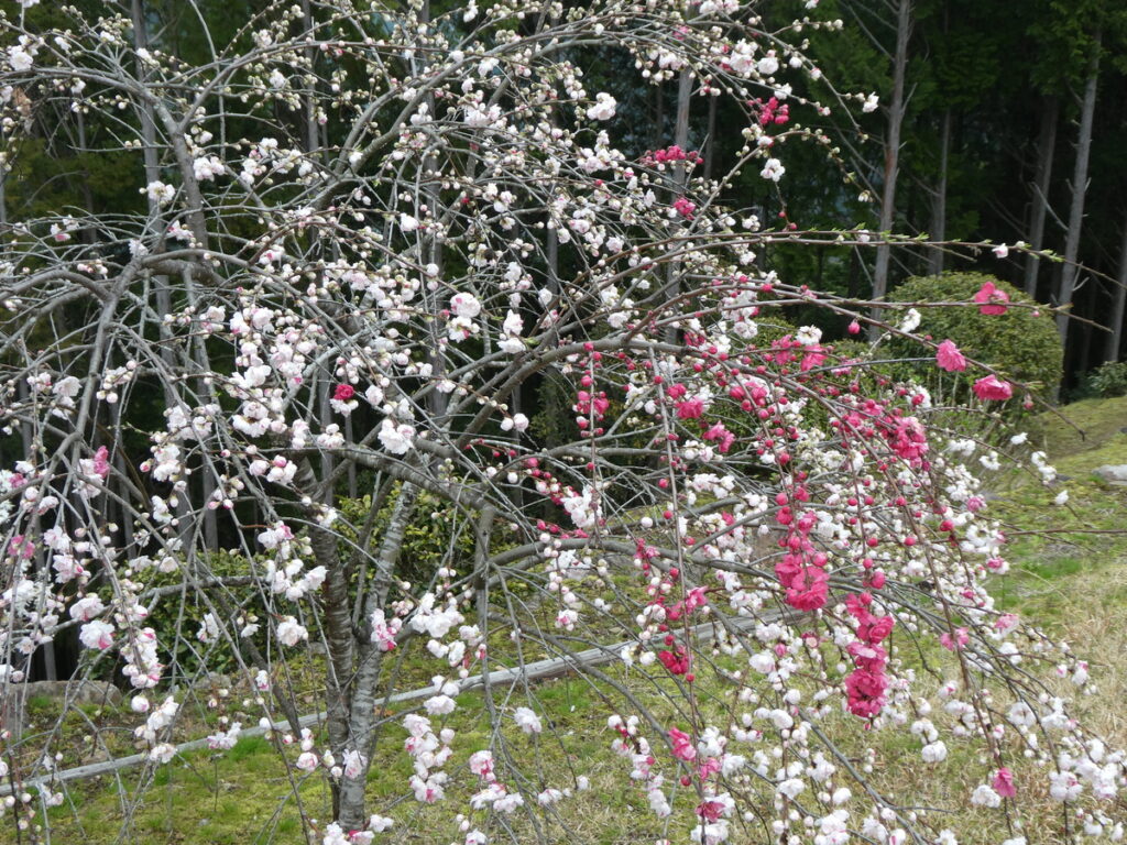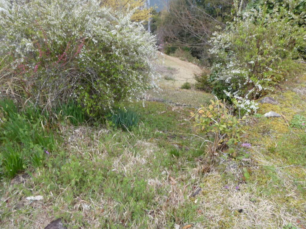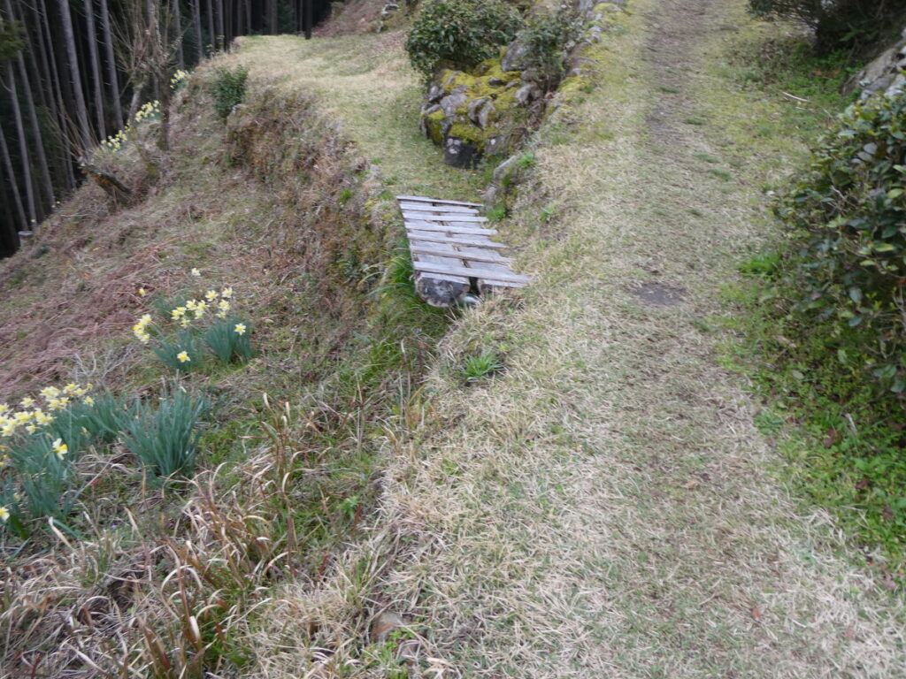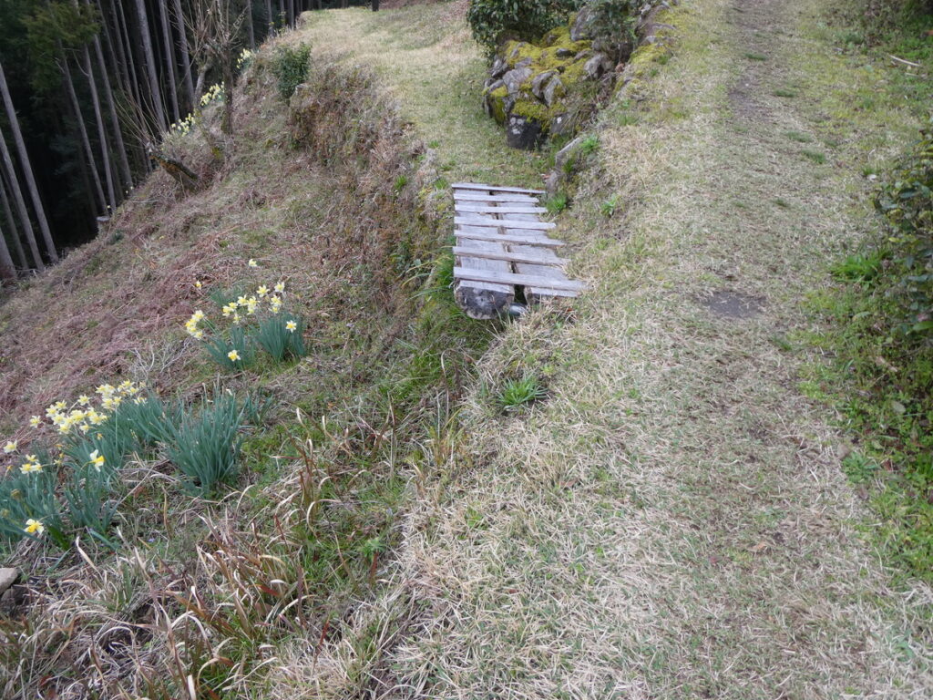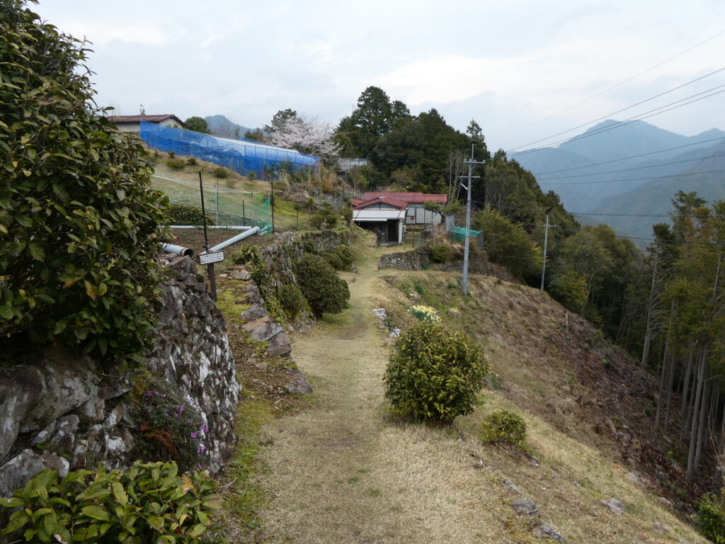 道路から左側に入ると、そこが世界遺産エリアである。一人しか通れない狭い小道が続いている。道端には可愛い花が咲き、木にもピンクや白や黄色の花が咲き誇っている。漫画日本昔話に出てくる古の風景みたい。小道の先にはいくつもの壮大な山々。