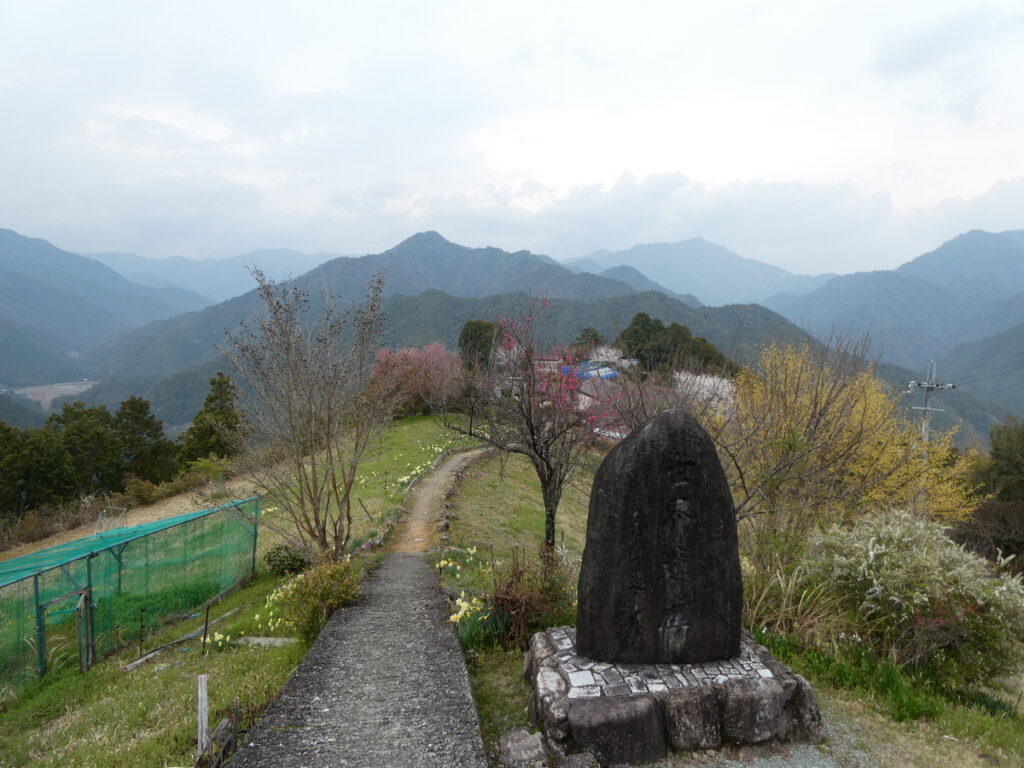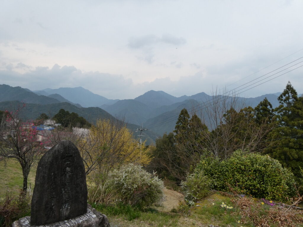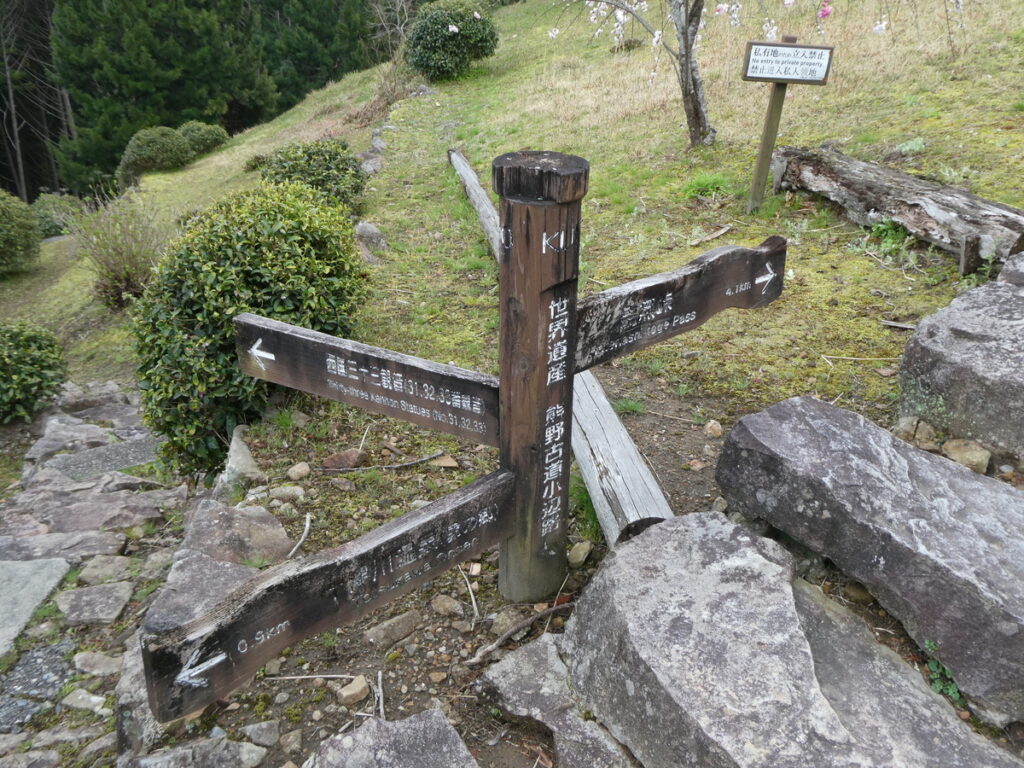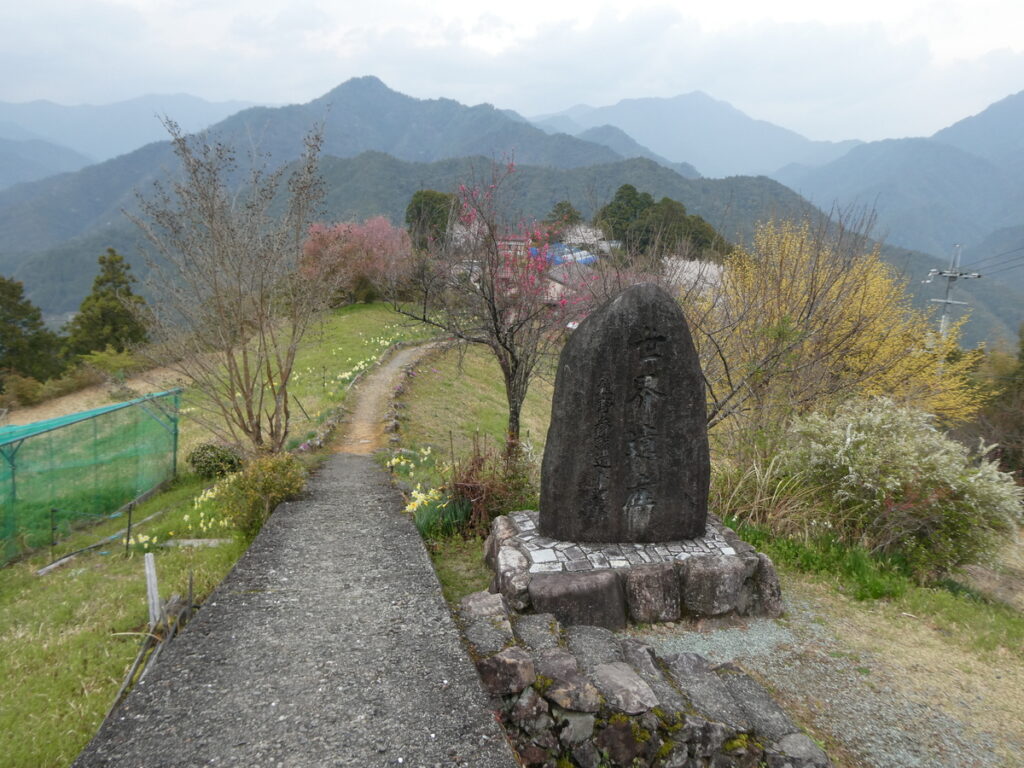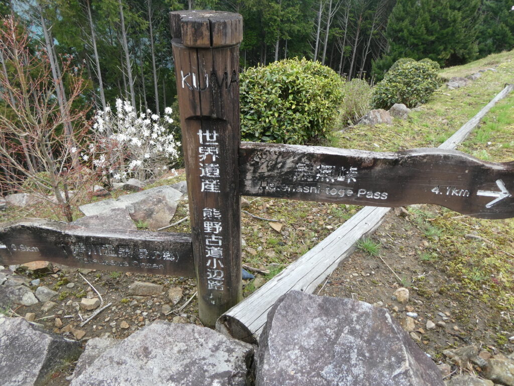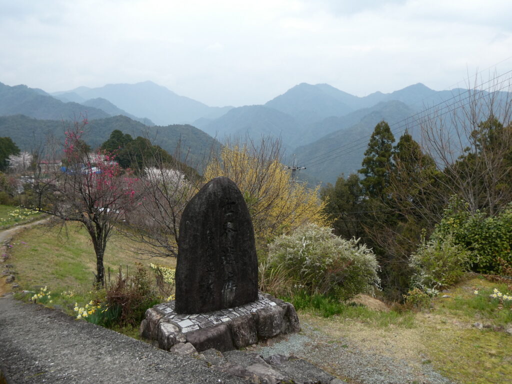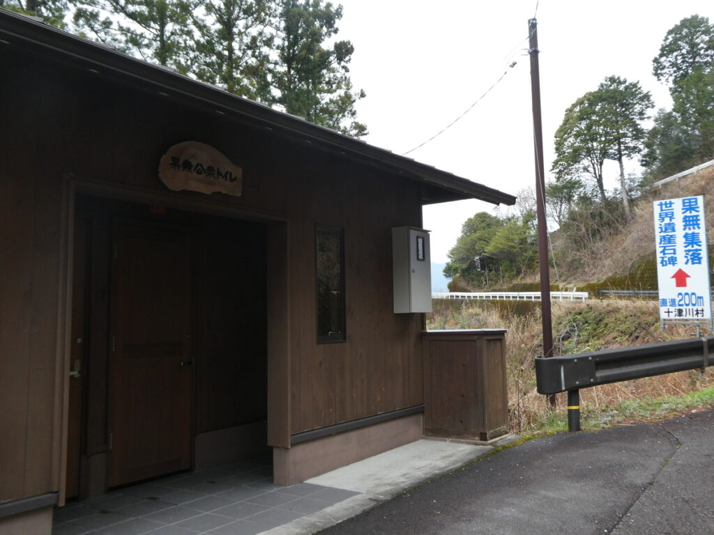 そこから200mほど歩くと、「世界遺産 熊野参詣道小辺路」と書かれた看板と石碑。そして、「世界遺産石碑前」という名称のバス停がある。あの細い道をバスも通っている、ということだ。バスは月曜日のみ運行で「奥果無」行が2本、「十津川温泉」行が2本だけ。
