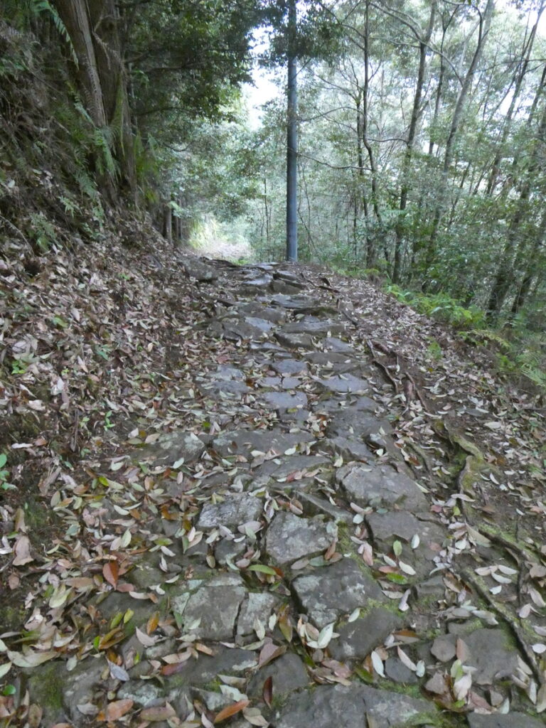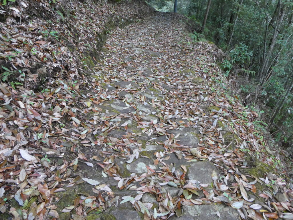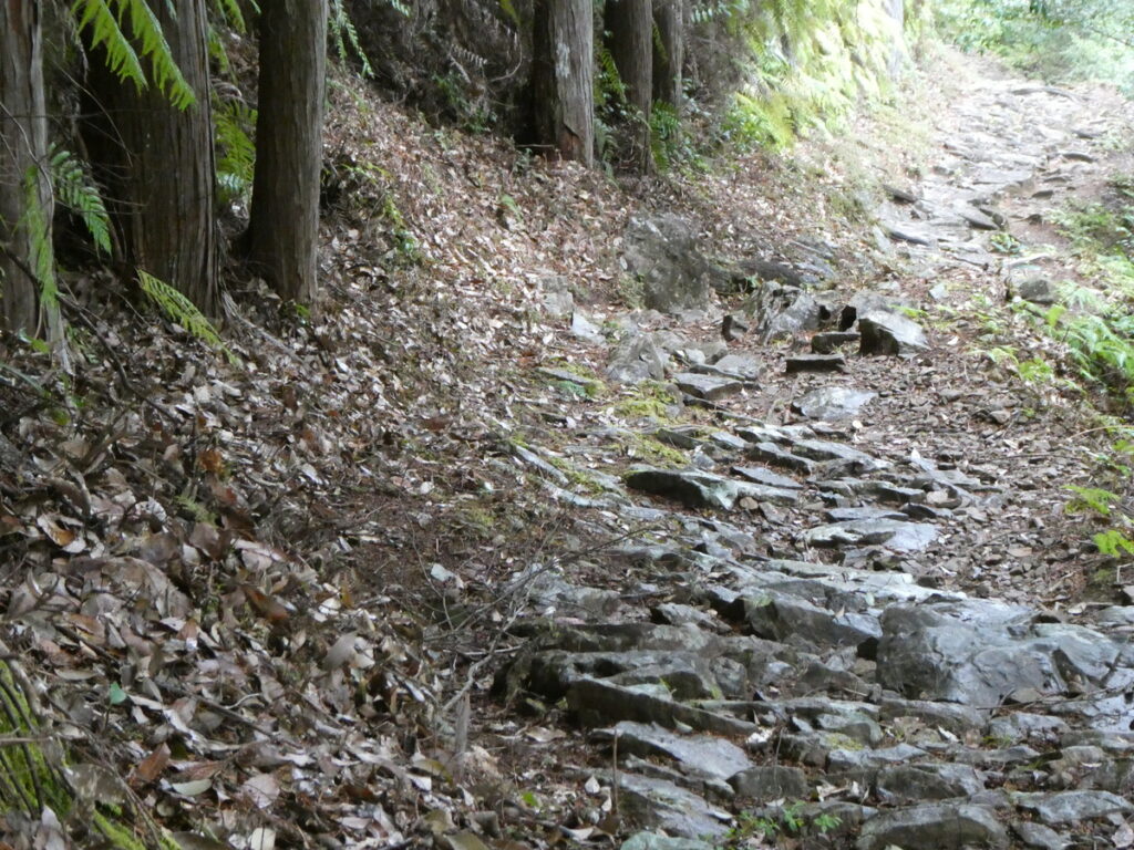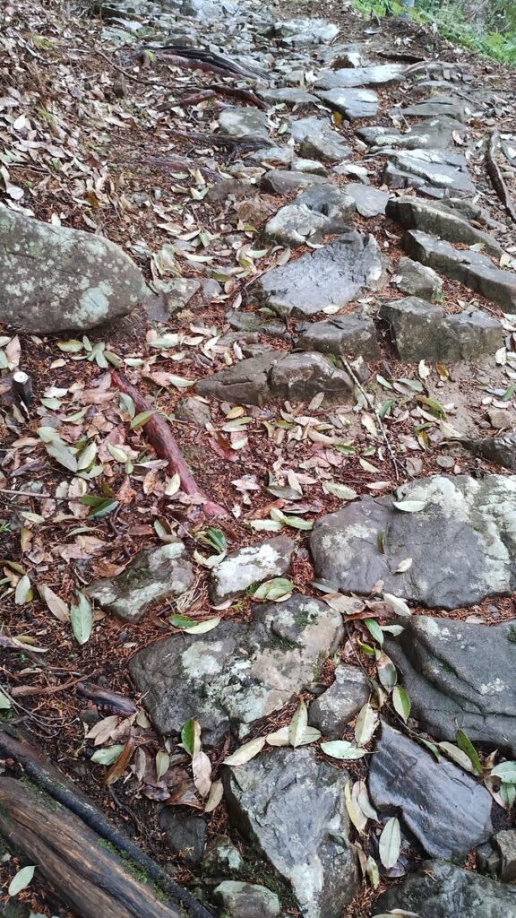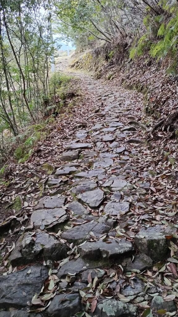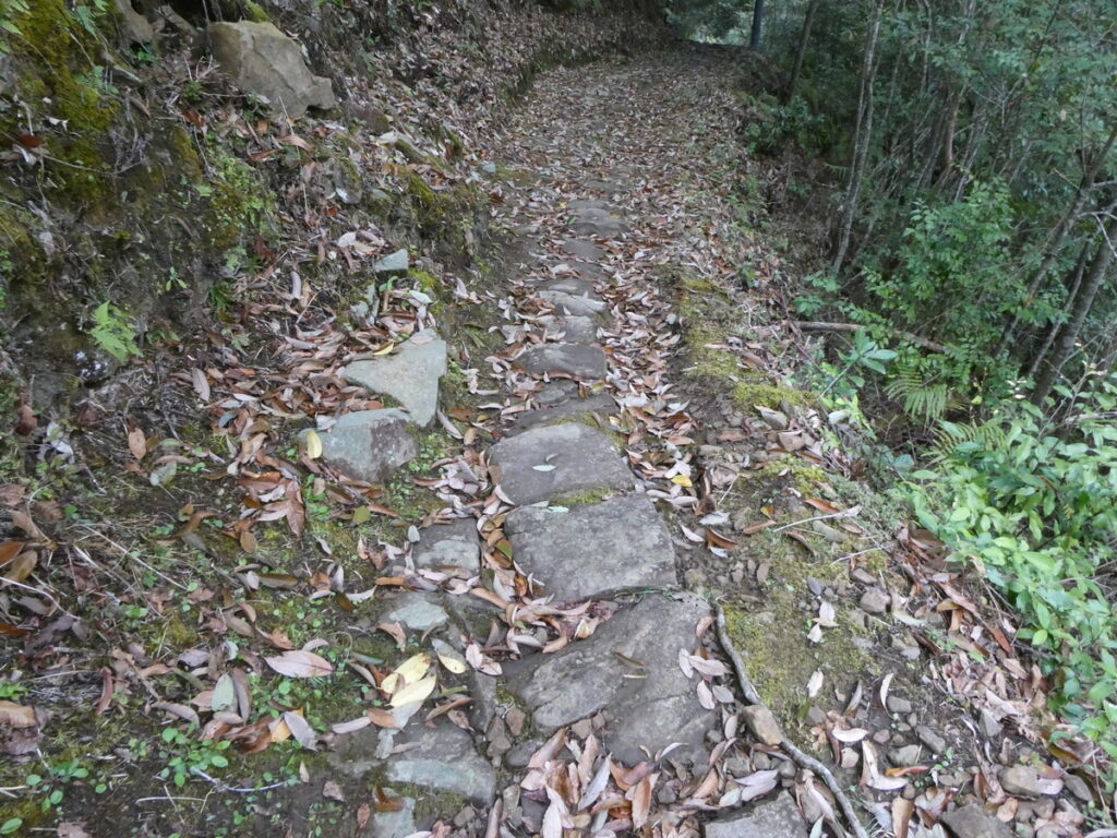 古い石畳の細い道が山の下へと続いている。数軒の住宅が立ち並ぶエリアを越えるとそこはもう山の中、片側に荒々しい山肌、片側は崖。古の多くの巡礼者も歩いただろう味わい深い石畳。妙に味があって、古の時代にタイムスリップしたみたい。どこまでも歩いて行きたかった。でも夕方だったので、元来た道を引き返した。