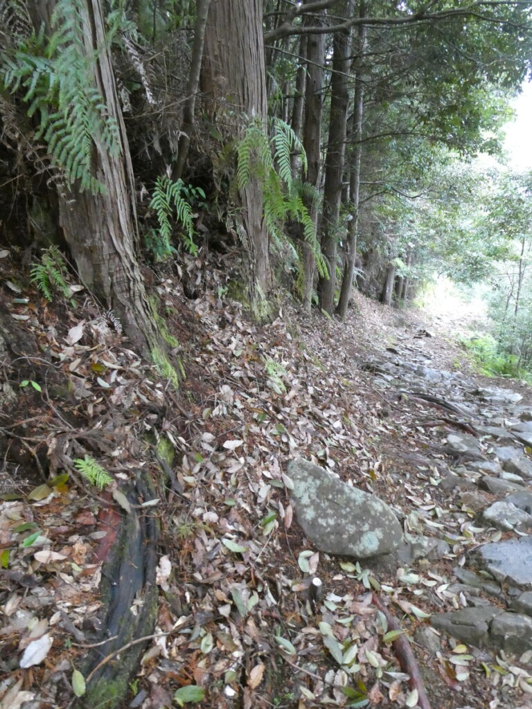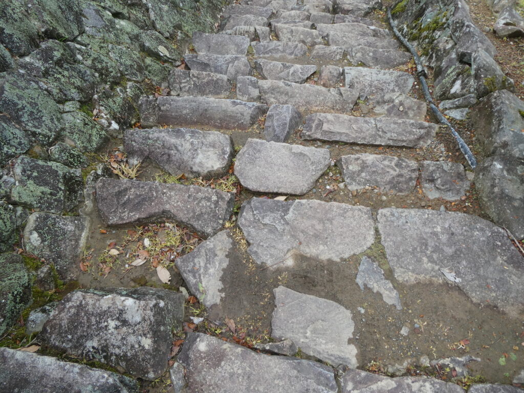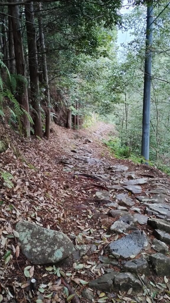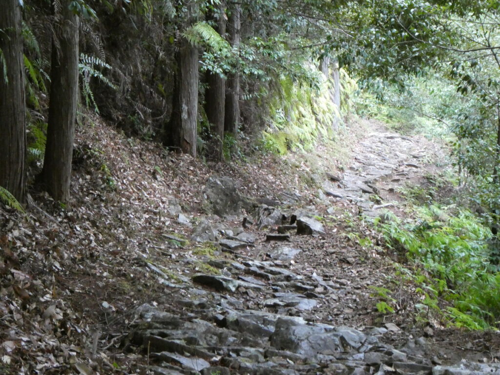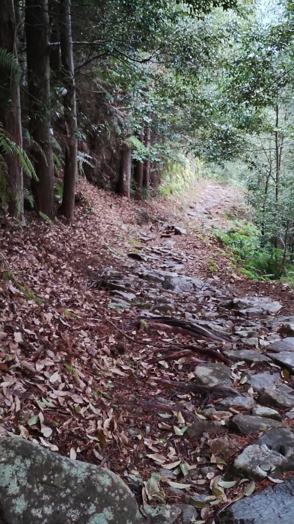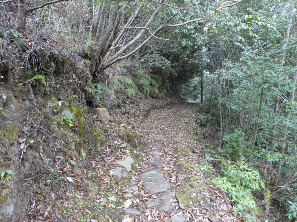 古い石畳の細い道が山の下へと続いている。数軒の住宅が立ち並ぶエリアを越えるとそこはもう山の中、片側に荒々しい山肌、片側は崖。古の多くの巡礼者も歩いただろう味わい深い石畳。妙に味があって、古の時代にタイムスリップしたみたい。どこまでも歩いて行きたかった。でも夕方だったので、元来た道を引き返した。