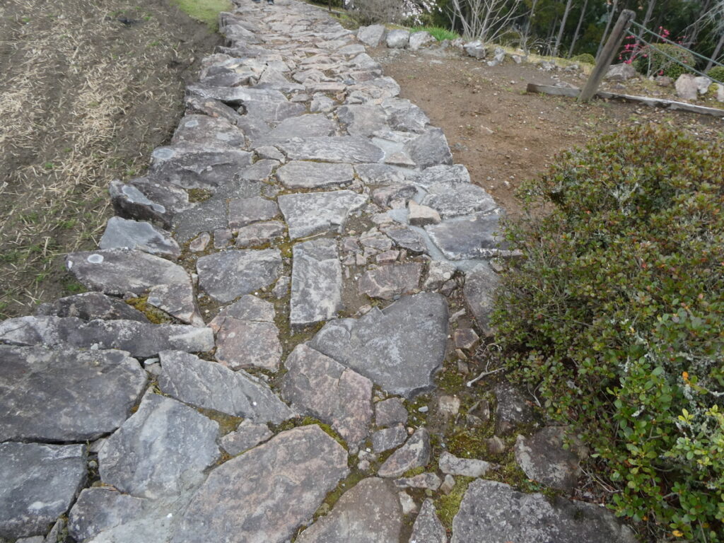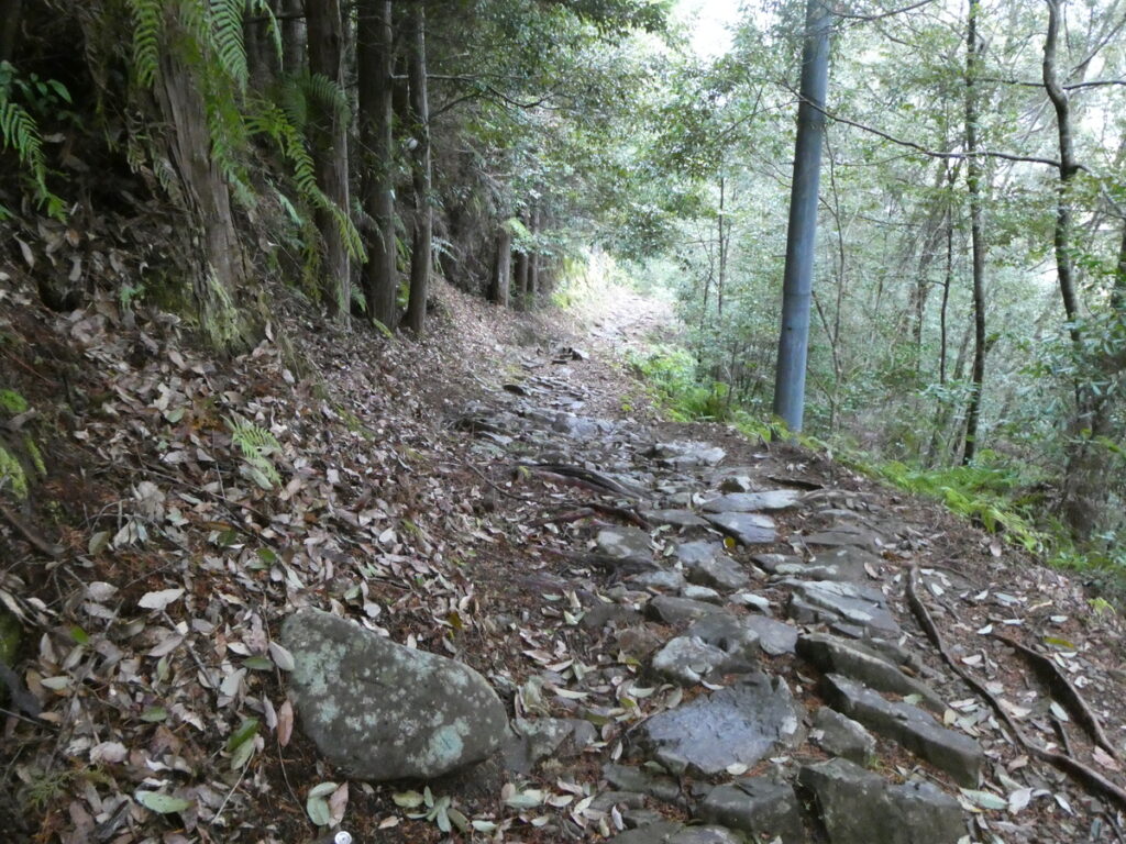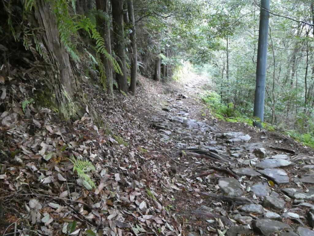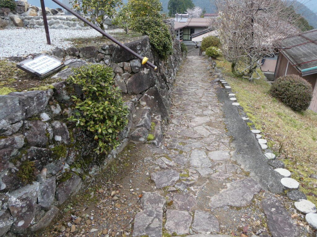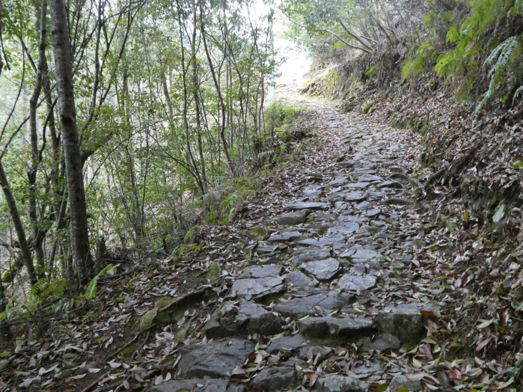 古い石畳の細い道が山の下へと続いている。数軒の住宅が立ち並ぶエリアを越えるとそこはもう山の中、片側に荒々しい山肌、片側は崖。古の多くの巡礼者も歩いただろう味わい深い石畳。妙に味があって、古の時代にタイムスリップしたみたい。どこまでも歩いて行きたかった。でも夕方だったので、元来た道を引き返した。