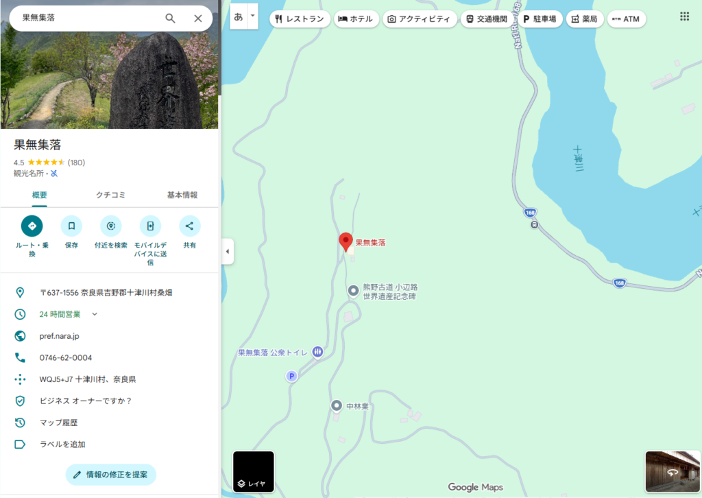 帰り、十津川温泉の前を通ったら、”ふくおか商店”という十津川唯一のコンビニ的な店があった。最低限の生活はここで成り立つのだろう。世界遺産の小道が、果無集落に住む数軒の人たちにとって、これが日常の生活道路だとすると 、不便な地とは言え、とても贅沢だ。
