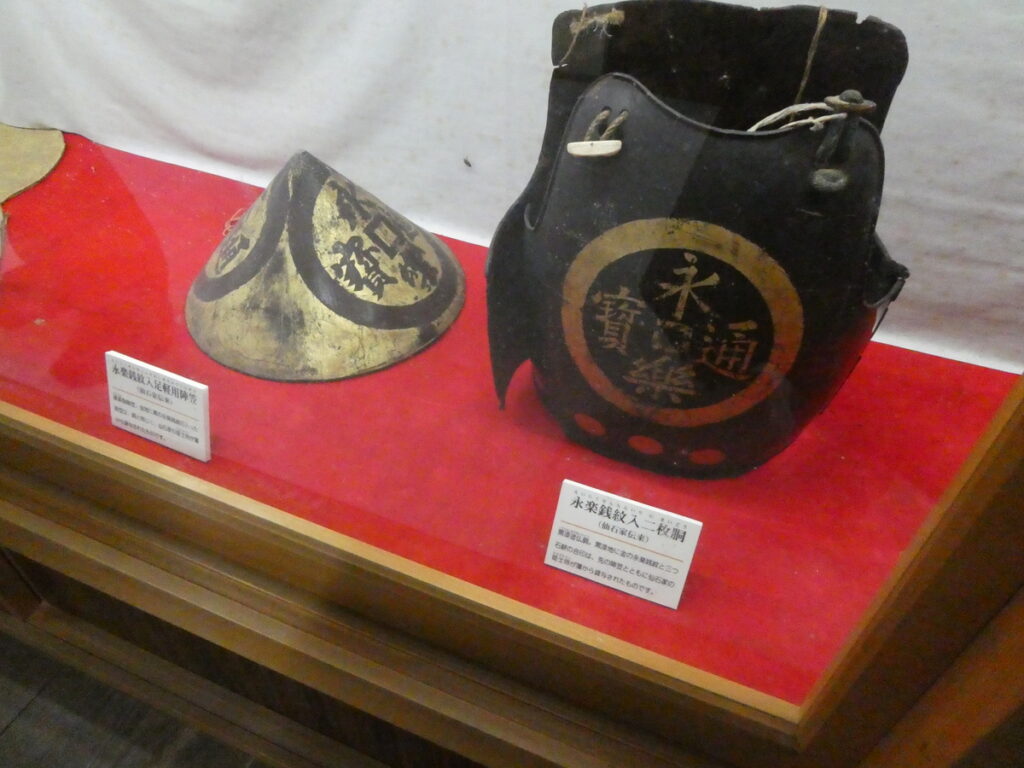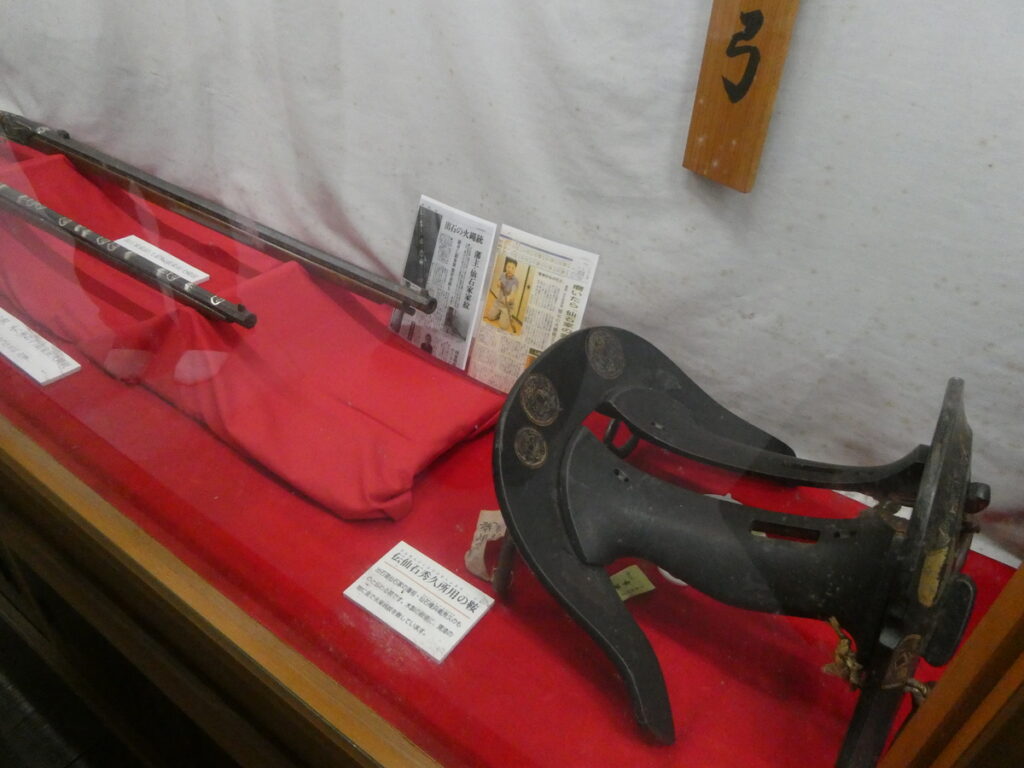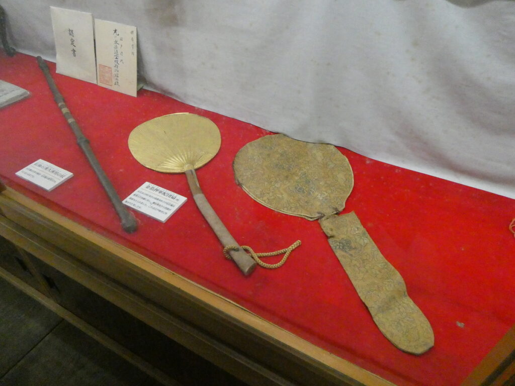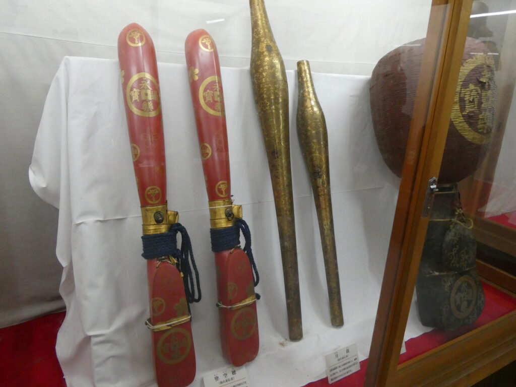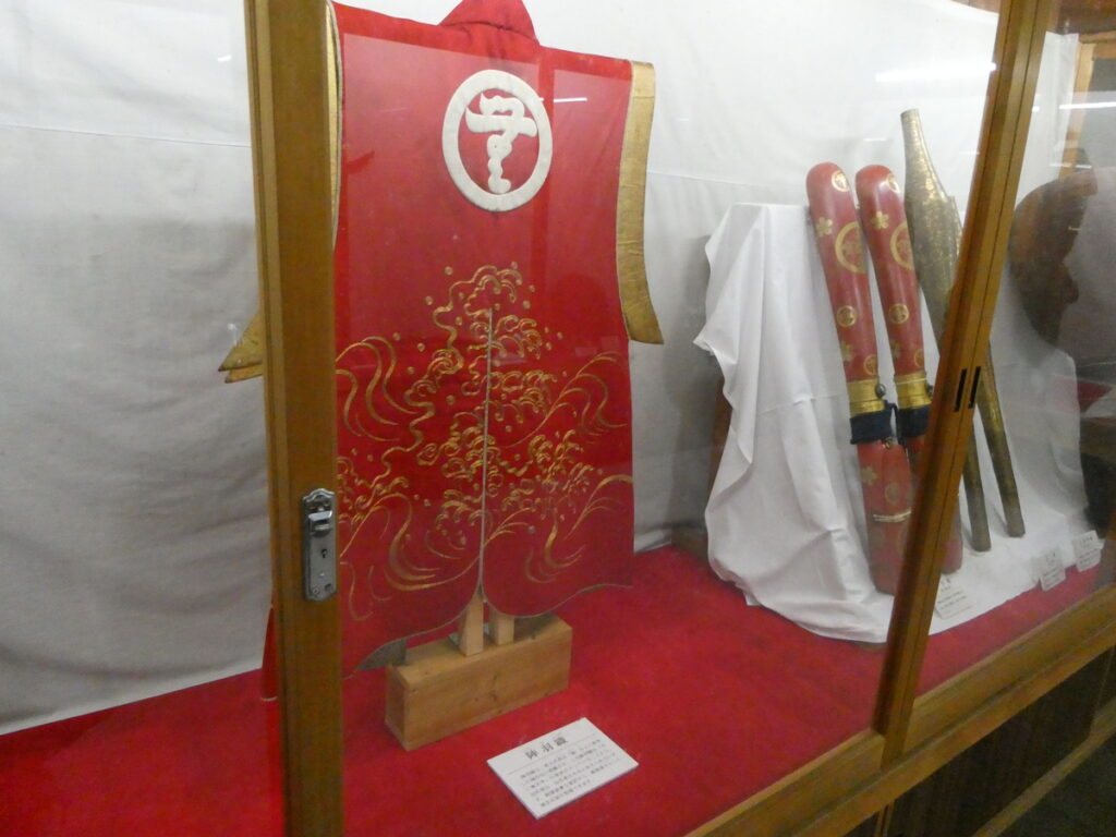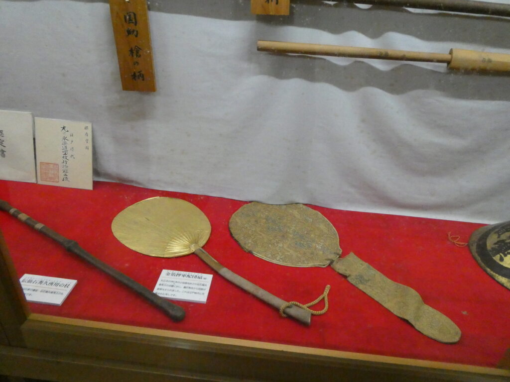 迷路のような建物を進むと土蔵に至る。内部は展示室となっており、仙石家ゆかりの品々が展示されている。陣太鼓、陣笠、永楽銭紋入二枚胴、金箔押軍配団扇などのほか、仙石秀久ゆかりの武具も並ぶ。火縄銃が発見された際、磨き直したところ仙石家の家紋が現れたという新聞記事も展示されており、興味深い。