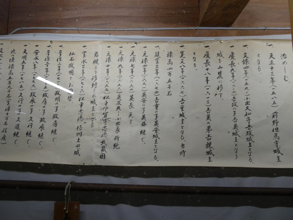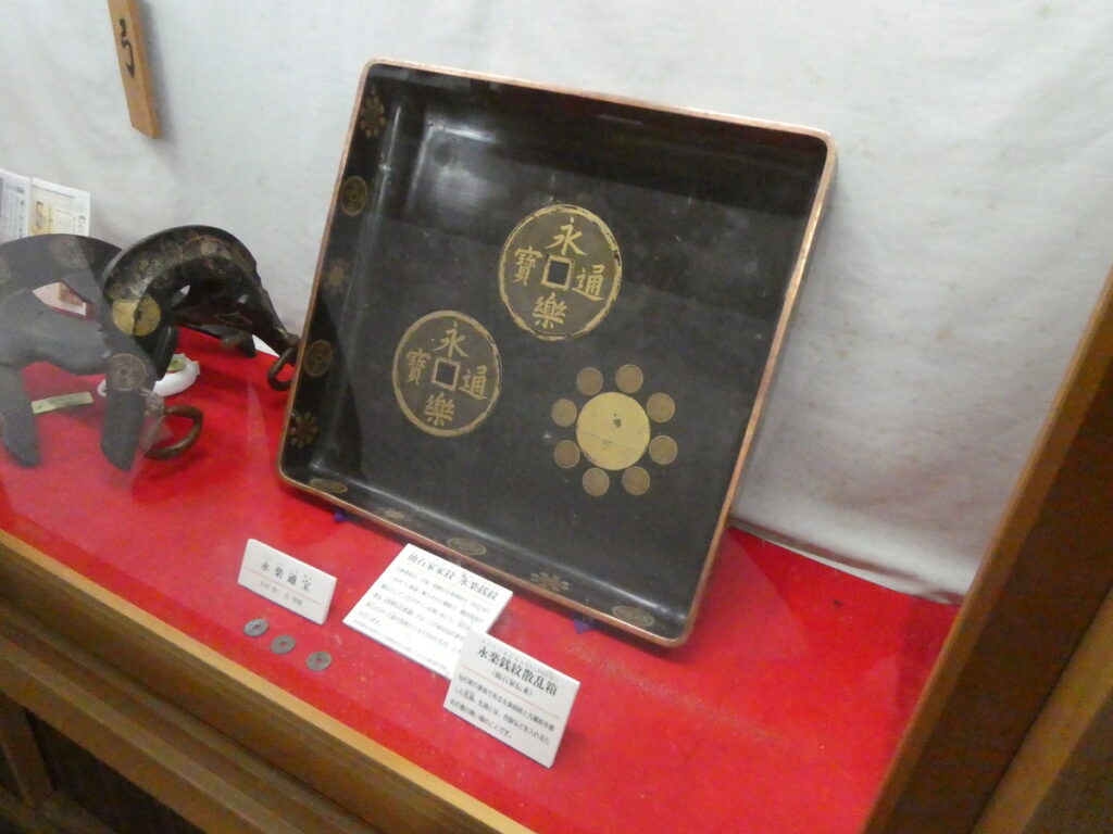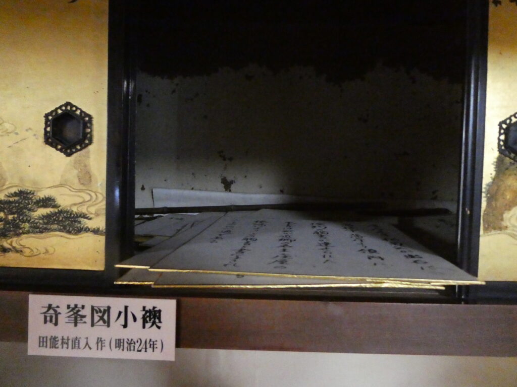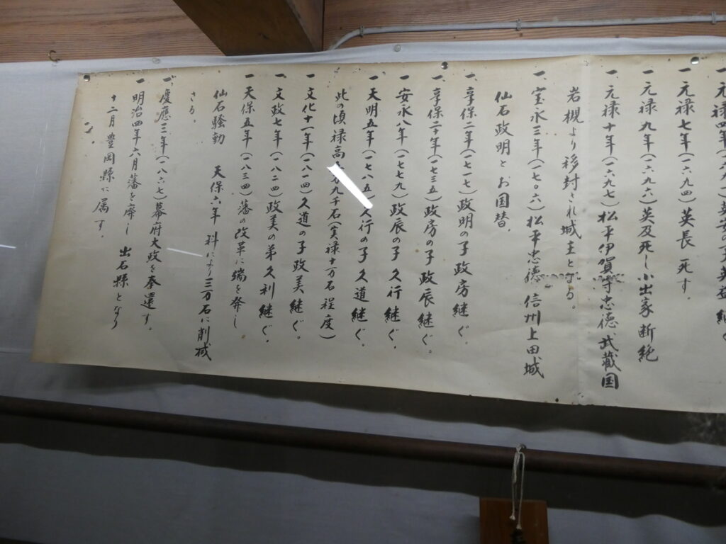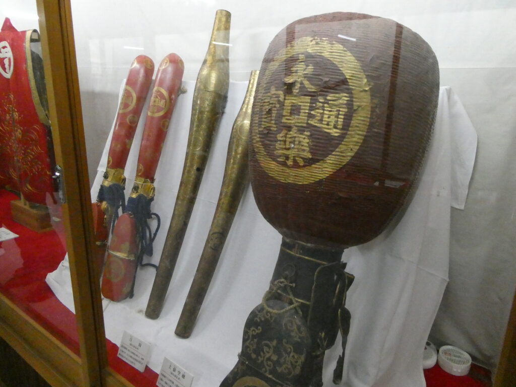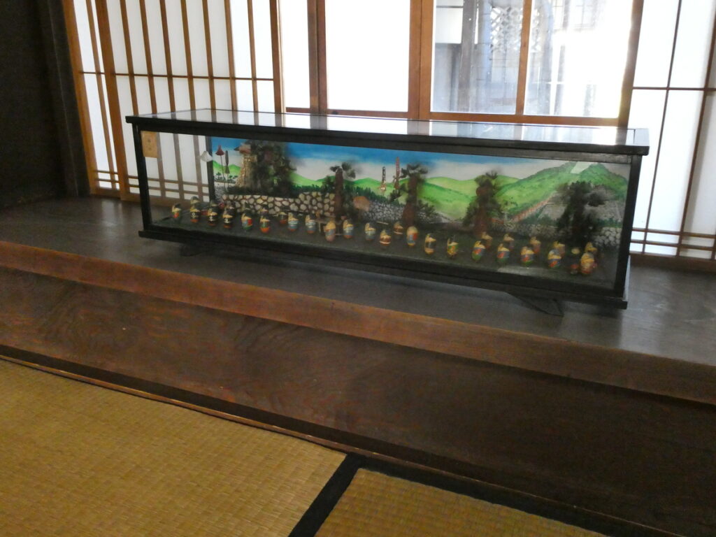 迷路のような建物を進むと土蔵に至る。内部は展示室となっており、仙石家ゆかりの品々が展示されている。陣太鼓、陣笠、永楽銭紋入二枚胴、金箔押軍配団扇などのほか、仙石秀久ゆかりの武具も並ぶ。火縄銃が発見された際、磨き直したところ仙石家の家紋が現れたという新聞記事も展示されており、興味深い。