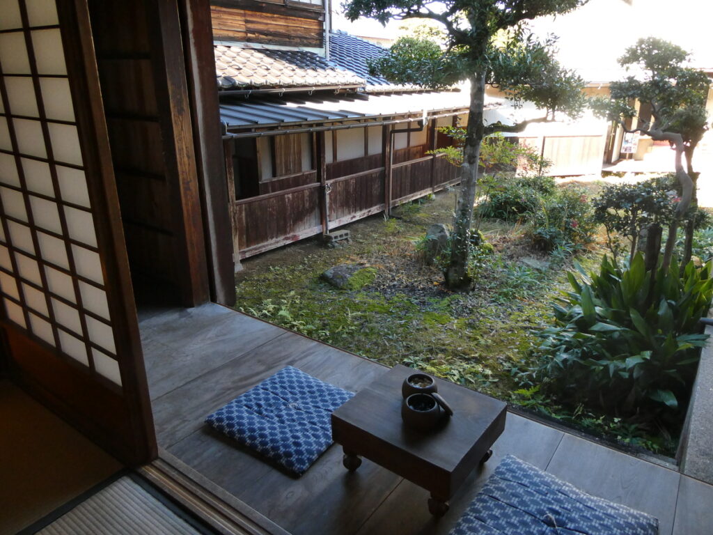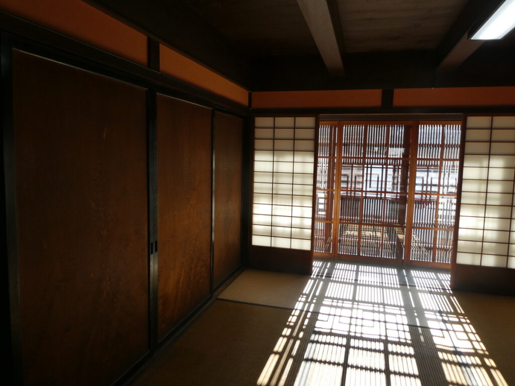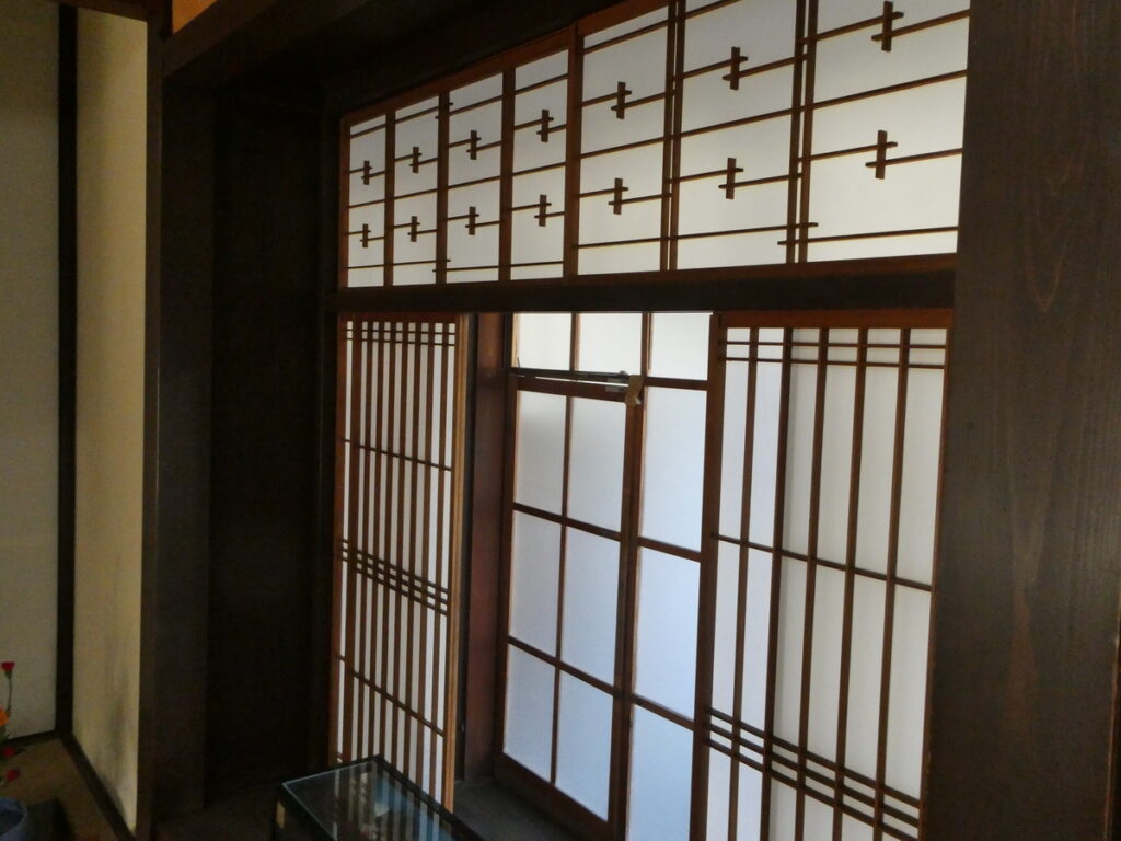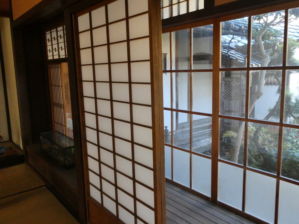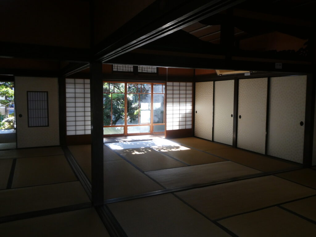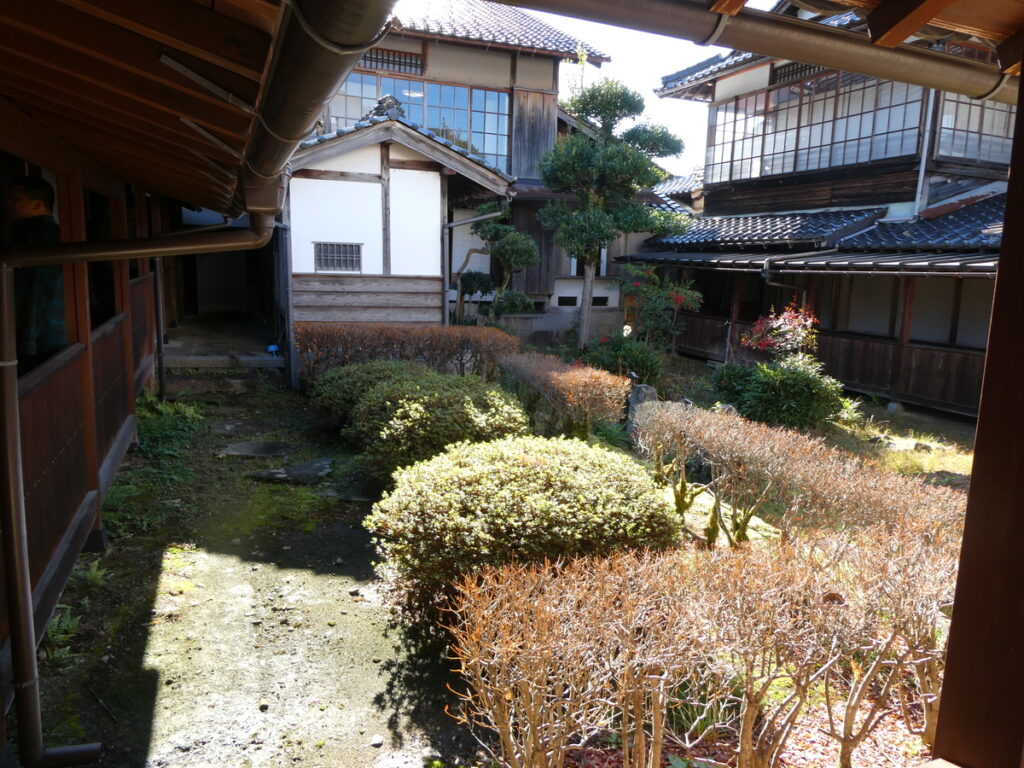 格子戸や障子の意匠は細部まで工夫され、光の入り方が美しい。廊下の窓の形にも変化があり、歩くごとに異なる表情を楽しめる。広い中庭は十分な採光を確保するとともに、人目を気にせずくつろげる空間となっている。主屋、離れ、渡り廊下、土蔵が連なり、建物内部には数段の段差も設けられ、空間にリズムを与えている。