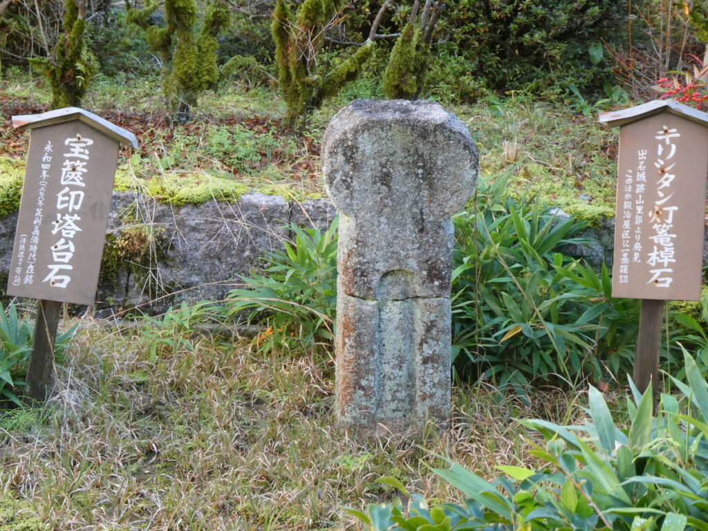 この住宅には三つの庭があり、その一つには「出石城跡山里郭より発見。このほか鍛冶屋区に一基確認」と説明された石造物がある。これは古田織部考案とされる織部灯籠で、上部を広げた形状の中に十字架を意匠として忍ばせた、いわゆるキリシタン灯籠の一例と考えられている。