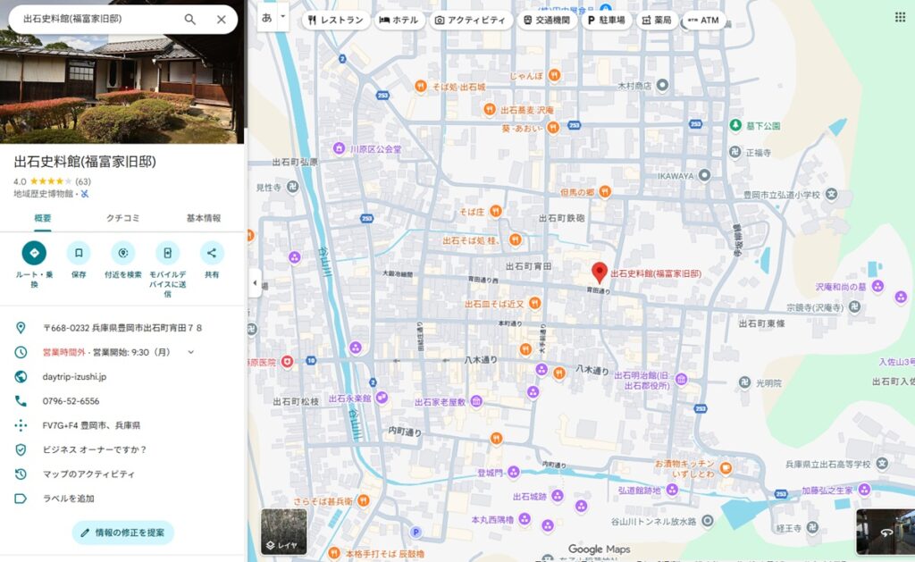外観からは想像しにくいが、内部は見どころが多く、見学後の満足感は高い。出石旧福冨家住宅は、実際に訪れてこそ価値が分かる史跡である。