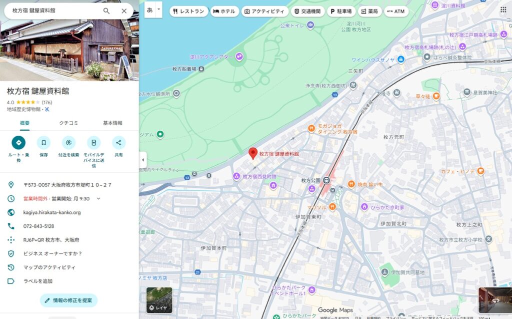 Googleマップ:市立枚方宿鍵屋資料館