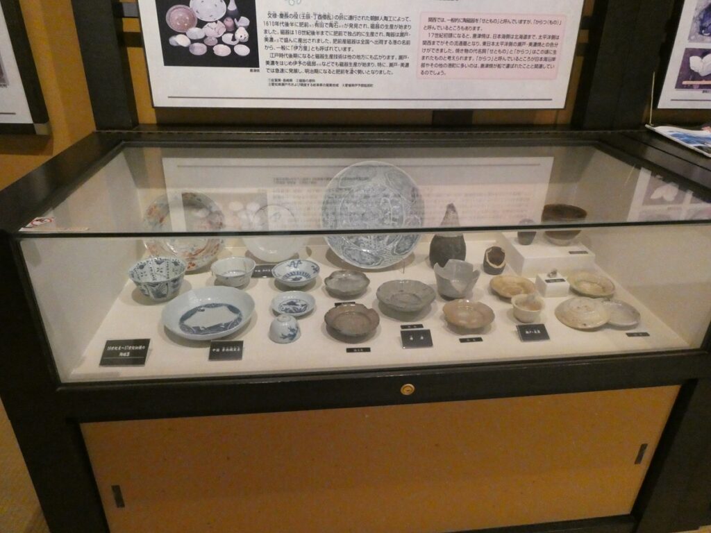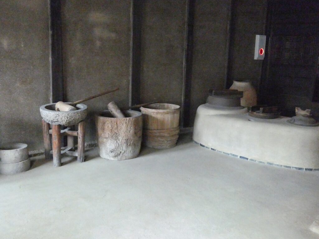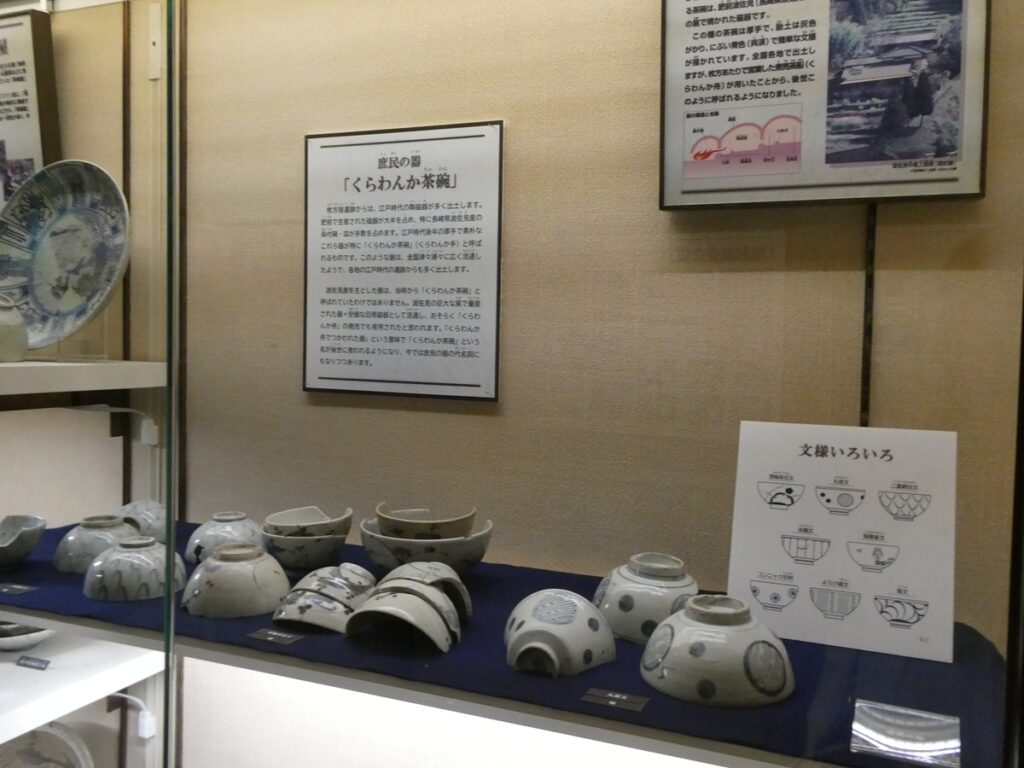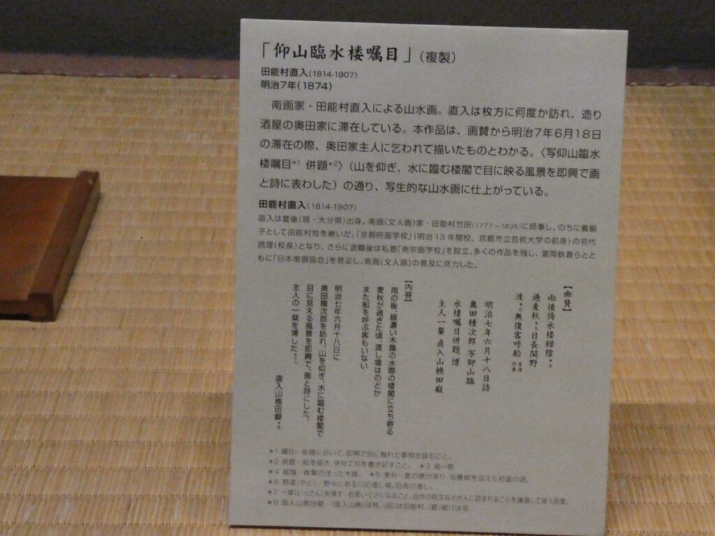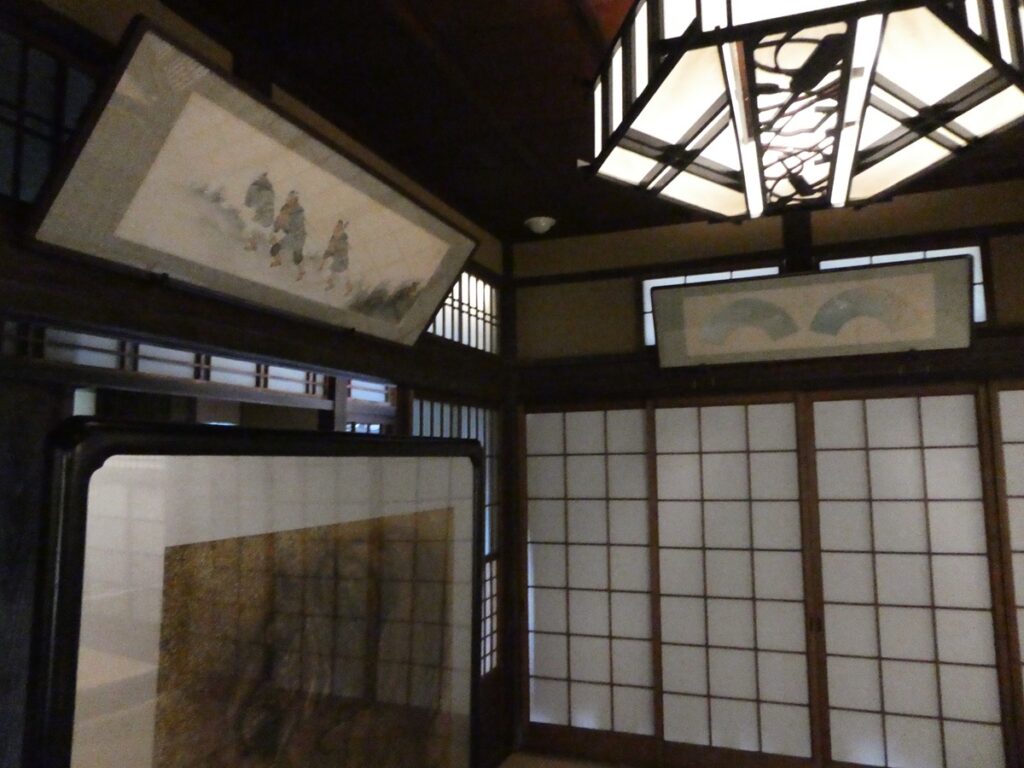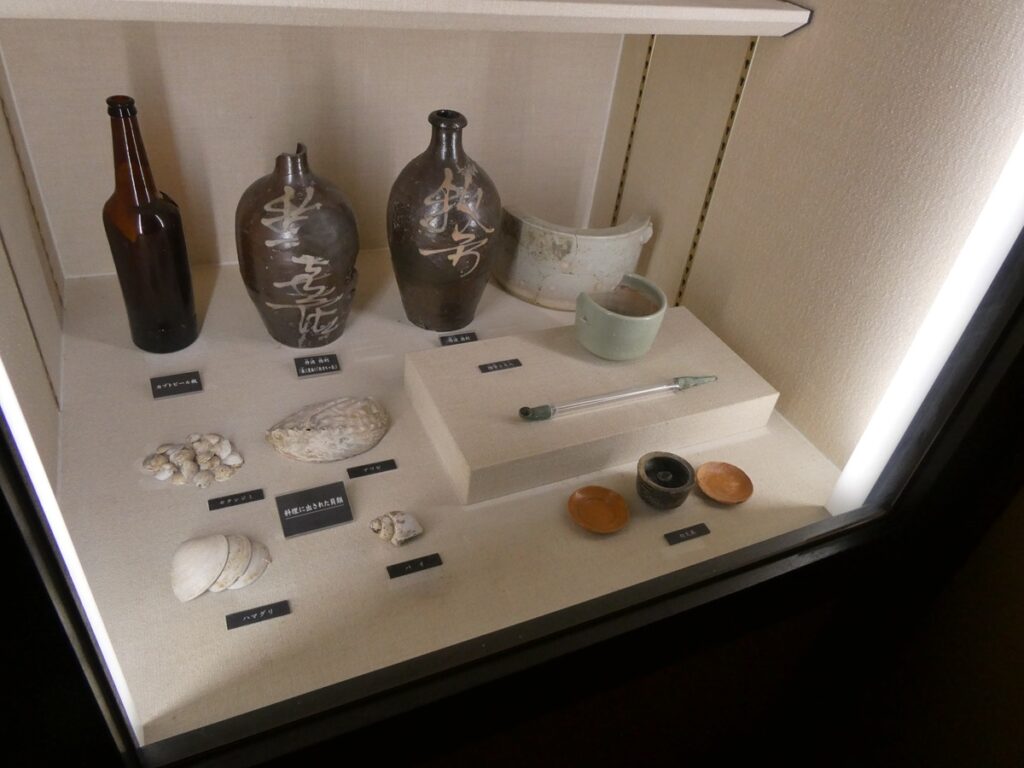 館内には当時の書や食器、生活道具が展示されている。