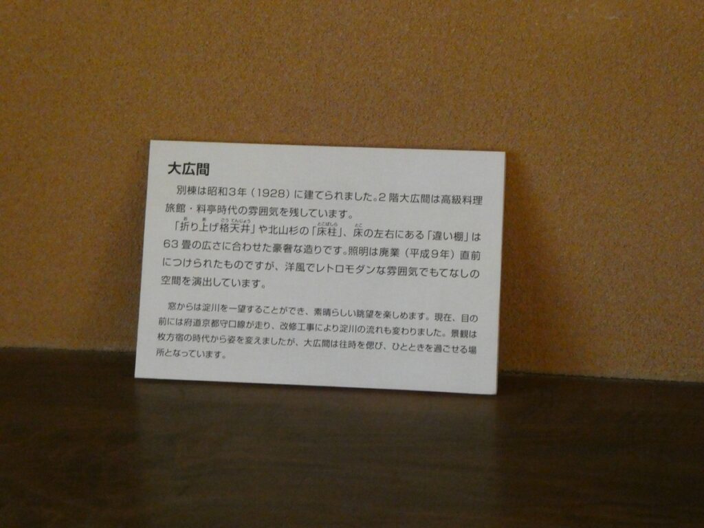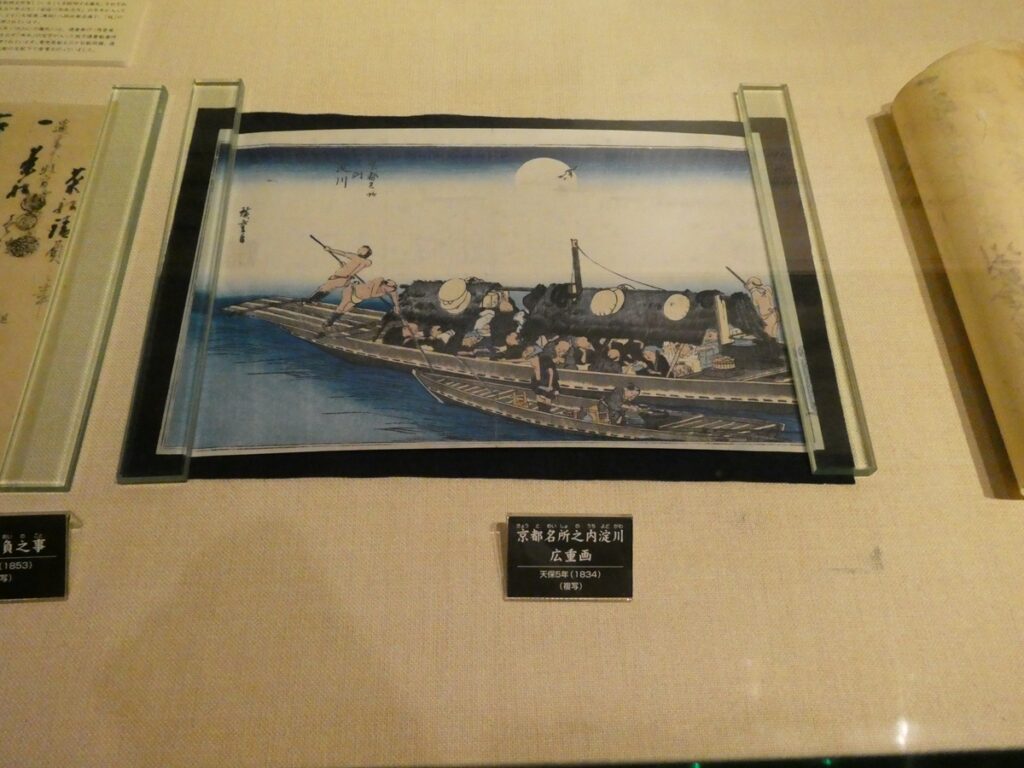 館内には、船や茶器や書が並び、窓の向こうに光る淀川が、まるで背景画のように控えている。