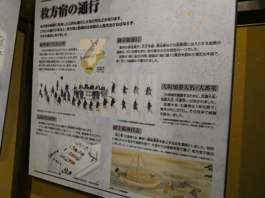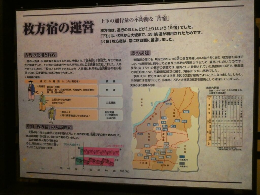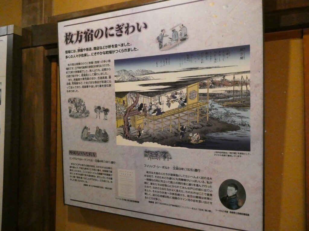 江戸後期の枚方宿には約380軒の家があり、そのうち70軒が旅籠屋。