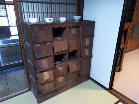 さらに台所に残された小物入れを見た時、胸がえぐられるような感覚になりました。お茶碗や箸が納められた棚に、遊女たちの本名が貼られたシールがそのまま残っていたのです。誰かの「生きていた証」が、無言のままそこに並んでいました。