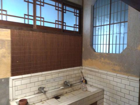 一方で、豪壮な意匠も随所に残っています。手作りの大正硝子、十二支が彫り込まれた石灯籠、本格的な茶室や飾窓など、経営者の富を誇示するような装飾が施され、当時の繁栄を伝えています。