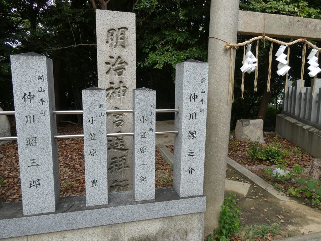 意賀美神社には鳥居が2つあります。行きの参詣でのぼったこの鳥居は、神社の裏手にでる参道。意賀美神社は万年寺山の中腹にあります。長い階段をのぼりちょっとした山登りをすると神社入口に、「皇祖遥拝所」と「明治神宮遥拝所」 が。社殿こそはないものの綺麗に手入れされ鳥居もたっています。このような遥拝所がある神社はなかなかに見たことが無いように思います。