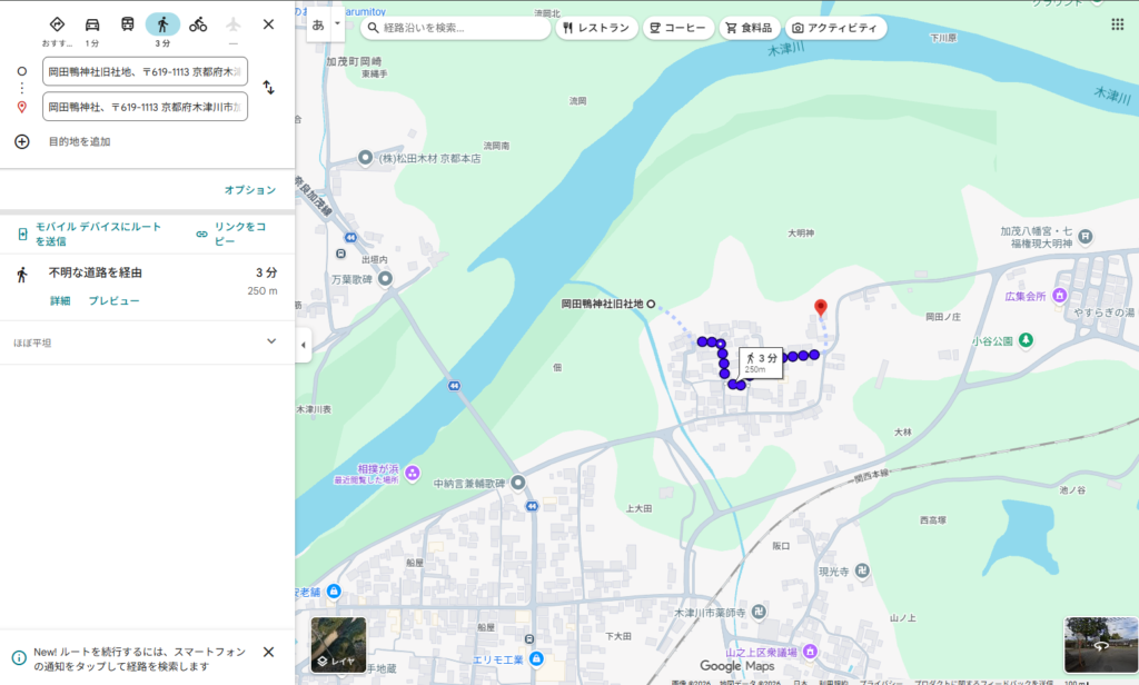 気づいたら聞いていた。「岡田鴨神社旧社地ってどこにありますか?」