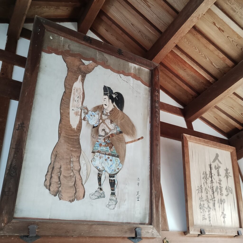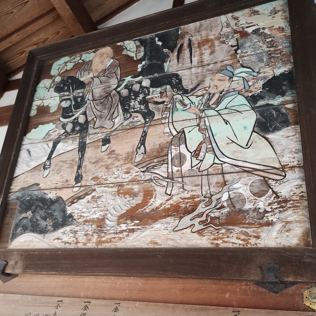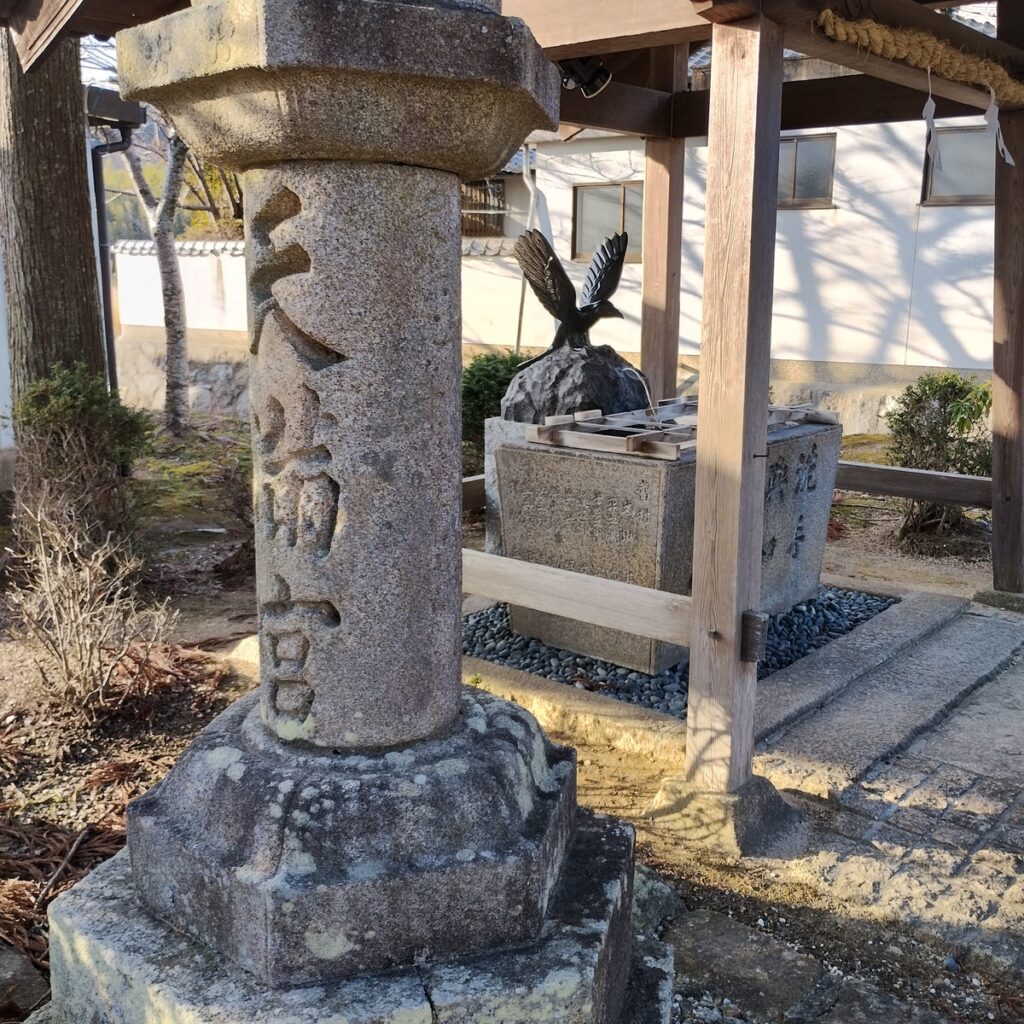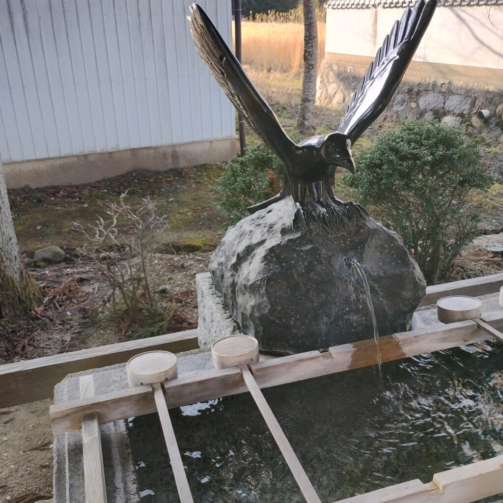 手水舎に羽ばたいているのは確かにあの八咫烏だ。足が三本ある八咫烏だ。 年季の入った古い絵が掲げられてある。