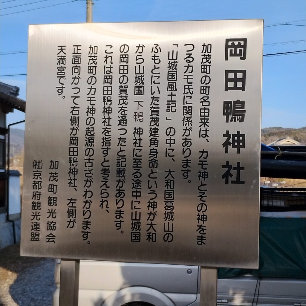 葛城氏が滅ぼされたことで政治的な居場所を失った鴨氏。奈良が政治的にドロドロしてくると鴨氏は移動を始めた。当時の京都は湿地帯が多く未開拓の地、鴨川と桂川という大きな川が流れる水の豊かな地。神主の話では、その移動の途上で岡田の地を経たと伝えられている。そして鴨族は最終的に下鴨の地に拠点を築いたという。