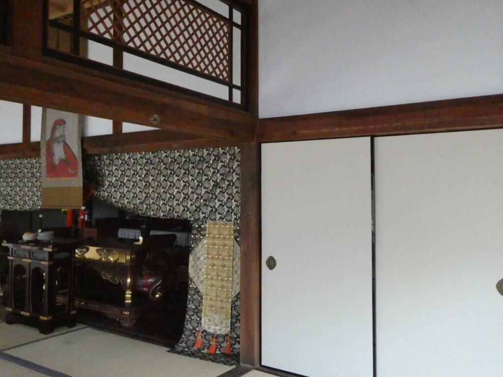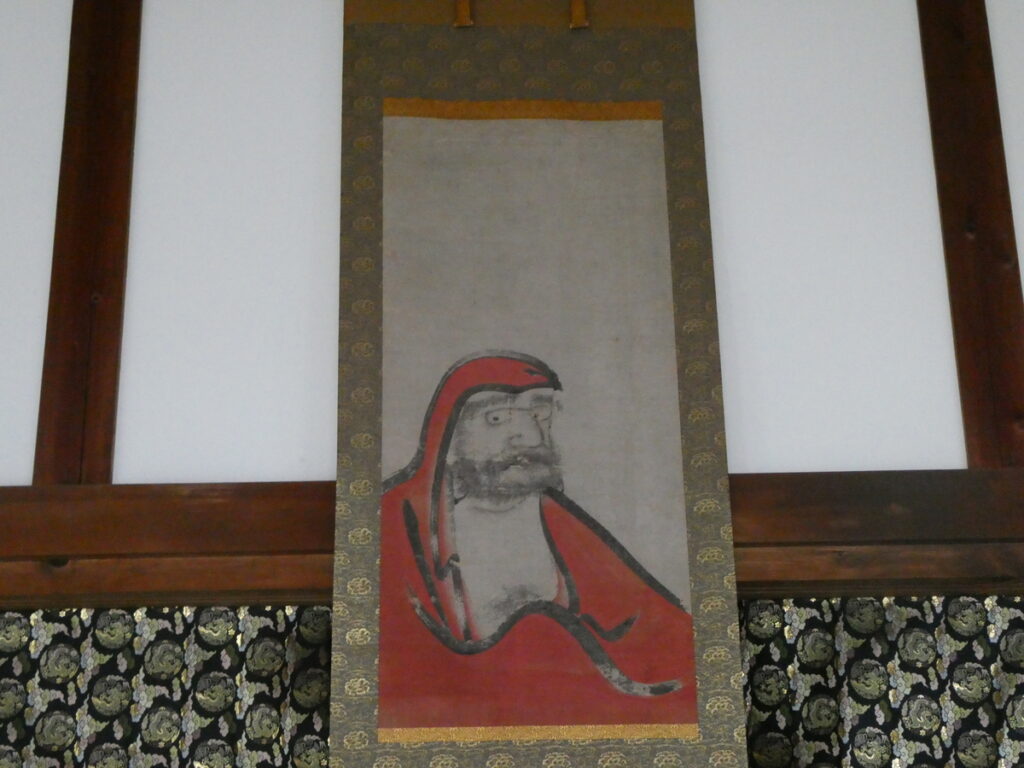 本堂の中正面には、禅宗の源流でもある達磨大師の絵が飾ってある。達磨大師は南インドの香至国の第三王子であった。インド仏教の偉大な祖師・般若多羅に師事し仏教の教えを深く学んだ。そして、真の文教の教えを広めるために、インドから中国に渡った。しかし時の皇帝・梁との問答がかみあわず、魏の国にはいり、嵩山の少林寺にて壁に向かって9年間座禅し続けてたことで知られている。