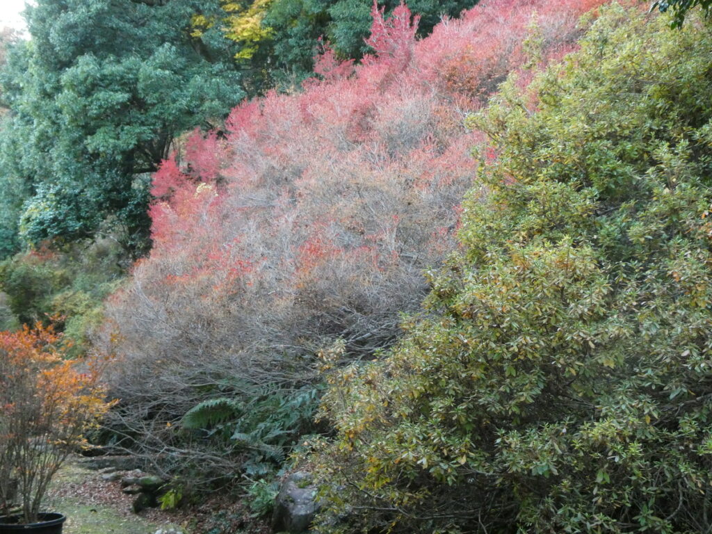 私などは品行方正なので♪スタッフさんが良い写真が撮れる方法を伝授してくれた。ツツジはさすが一般公開最終日、連日の雨で紅葉したツツジのほとんどが散ってしまっていたけれど、それが逆に雪をまとったように見える巷に出回っていないような不思議な紅葉の写真が撮れた。ここの真っ赤に美しく紅葉した立派な写真は出回っているけれど散り終わる最終版の写真はみたことない。