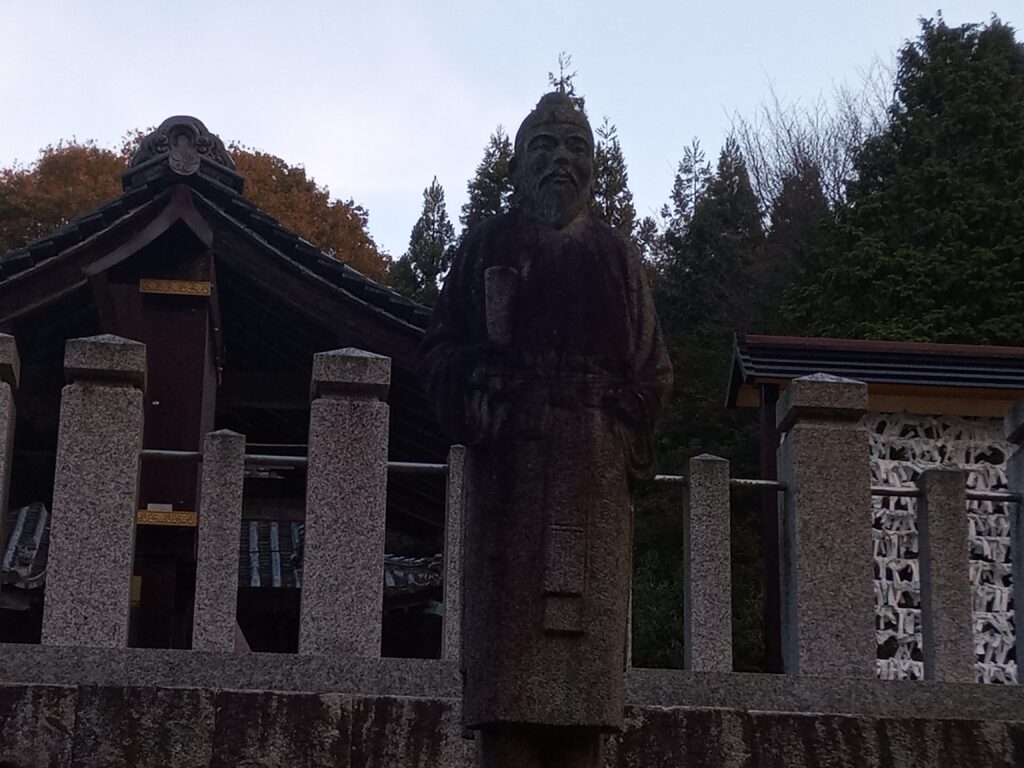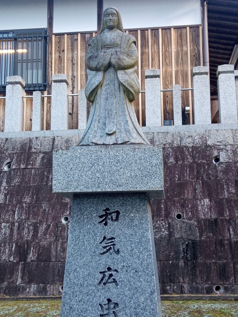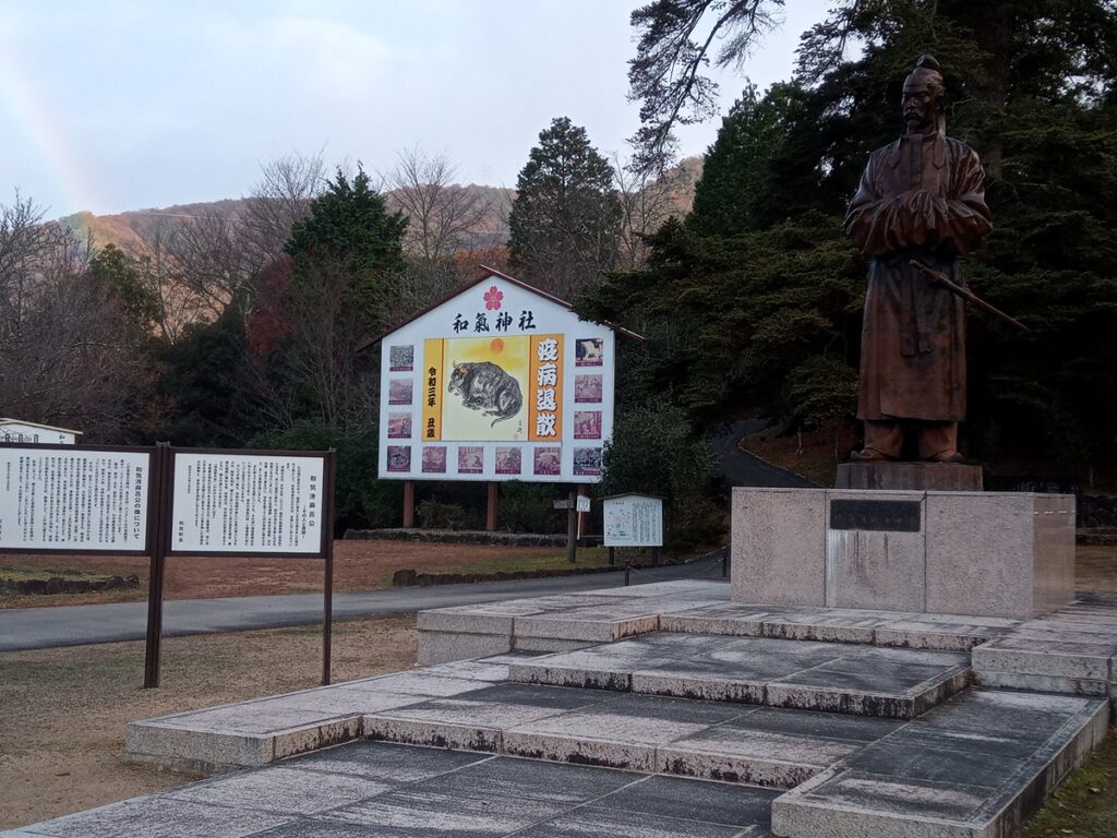 神社入口には、なかなかに美形で貫禄のある和気清麻呂の銅像がたってある。