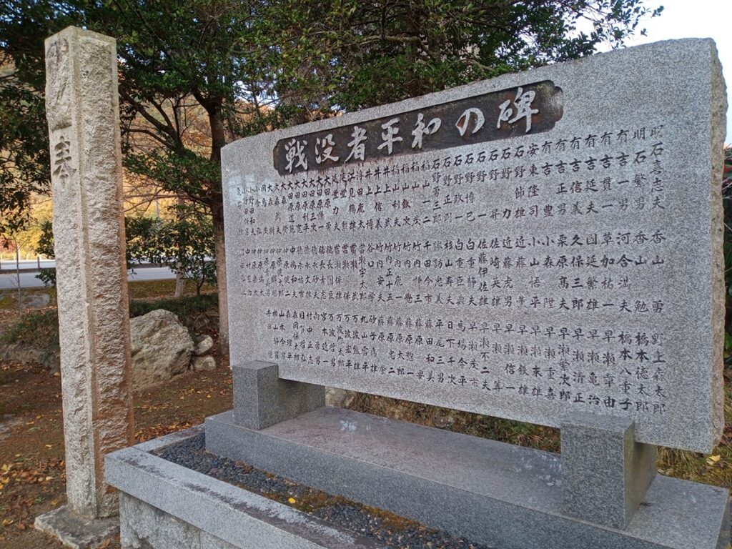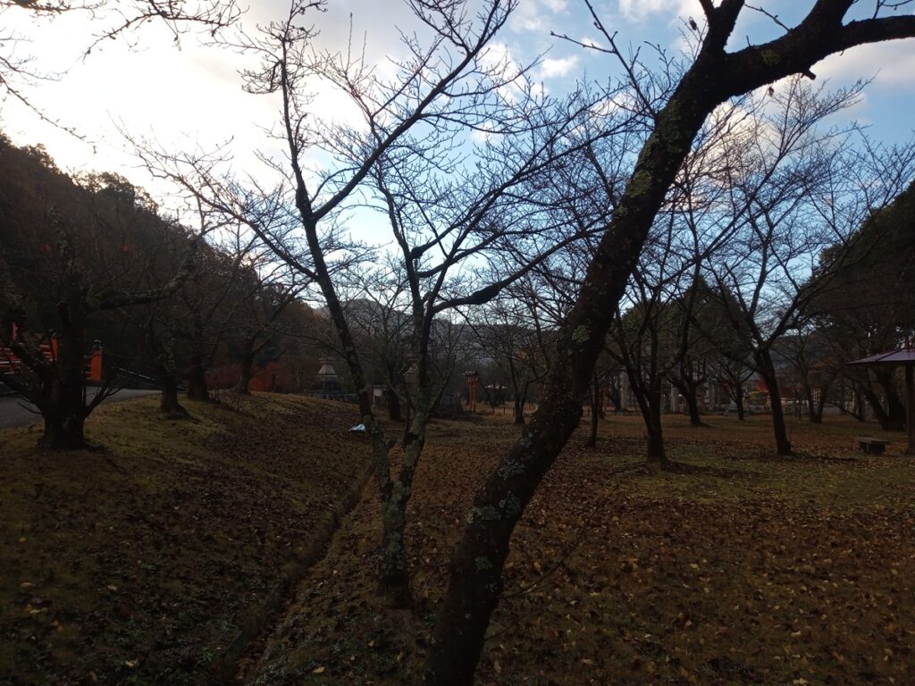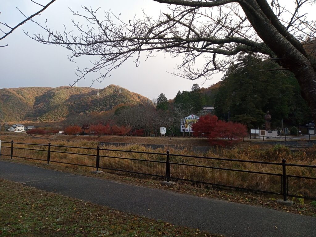 橋の左側一体・藤公園は、各県の藤が1本ずつ植えられていて、さらに全国各地の100種類ほどの藤も植えられている。春には藤まつりが行われる藤の名所。地名も”和気町藤野”で、721年時点では藤原郡という地名だったが、伝承によれば、726年に藤原氏に遠慮して藤野郡と改めたという。