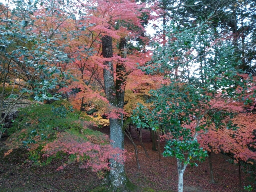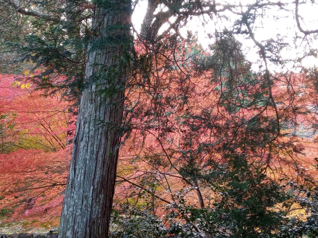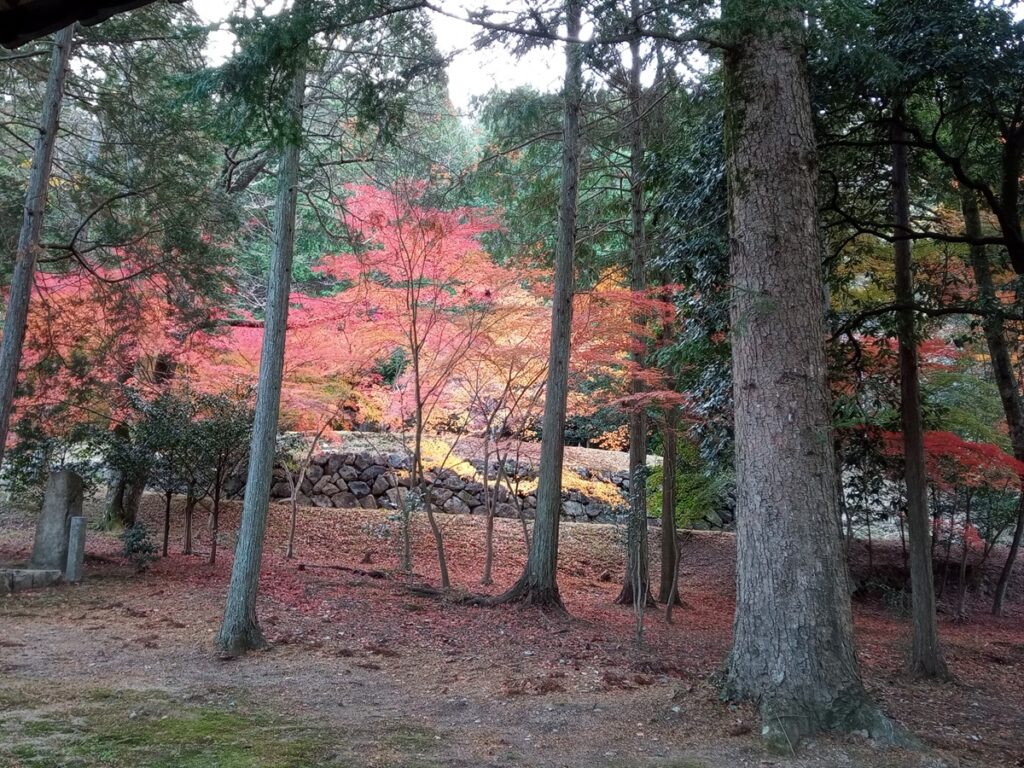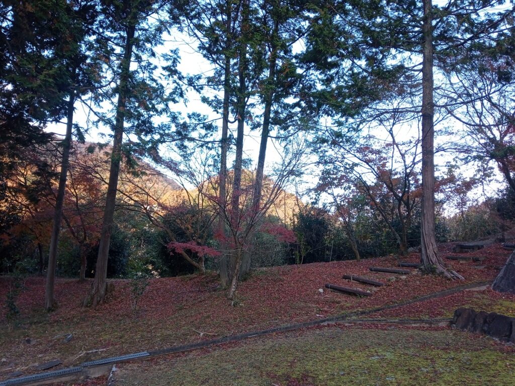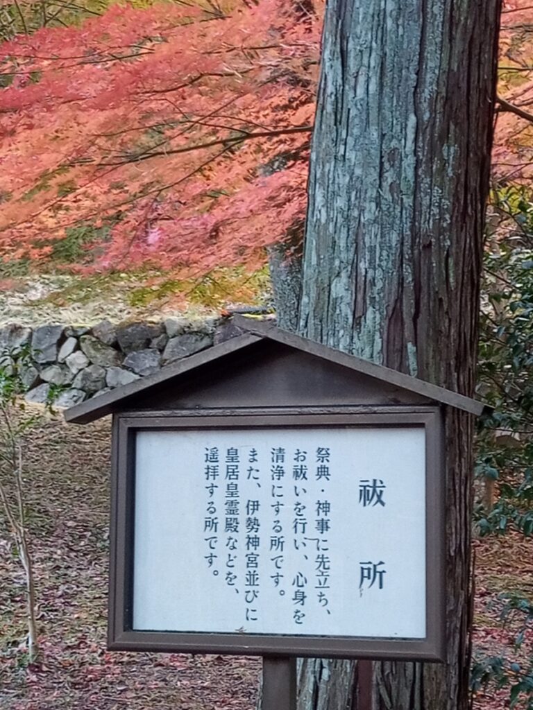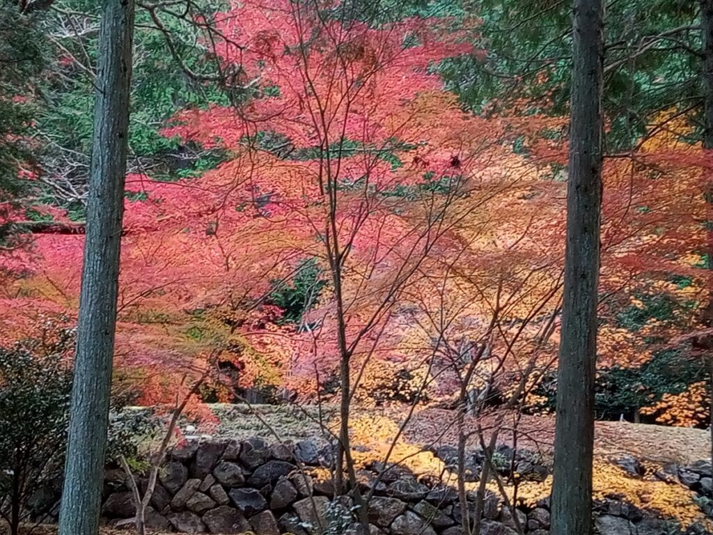 境内のもみじ山には、ところどころに短歌が刻まれた看板がたっていて情緒あふれる、タイムスリップしたかのような錯覚を覚える。紅葉が緑から黄色や赤に紅葉し始めているものあり、色とりどりで夢の中にいるみたい。