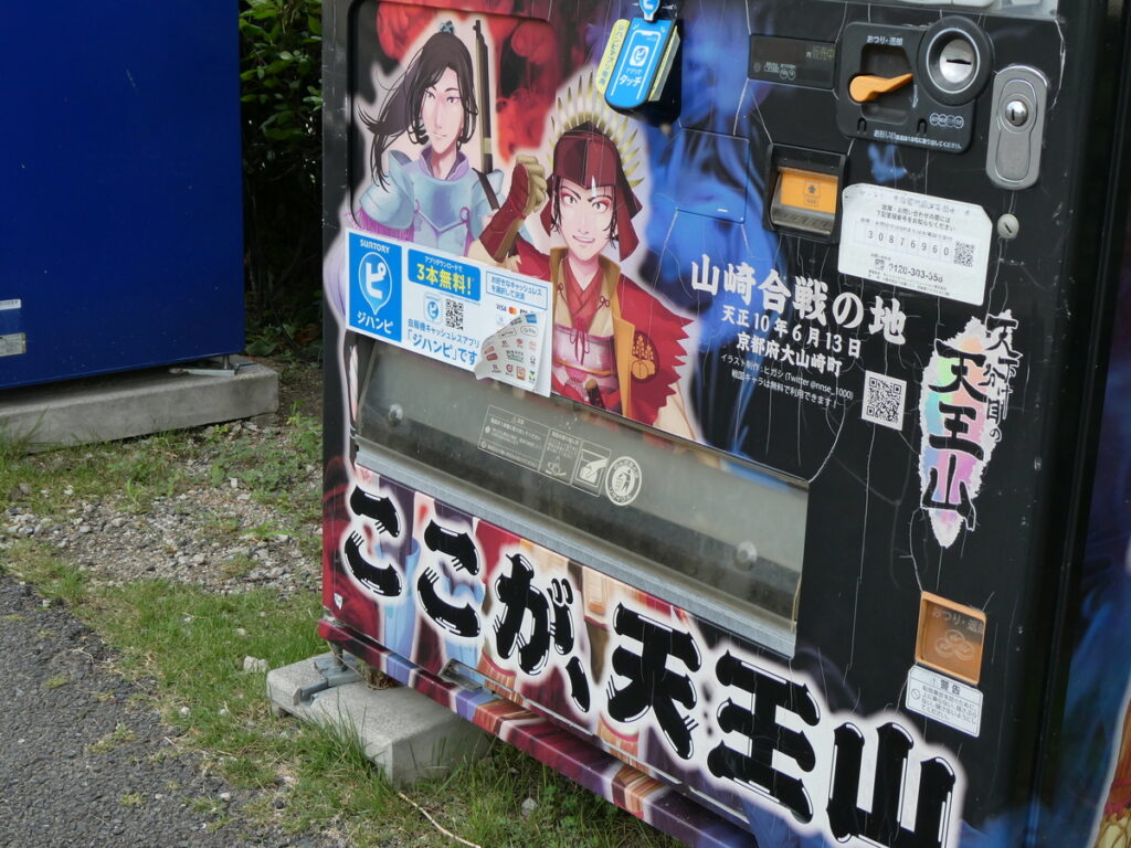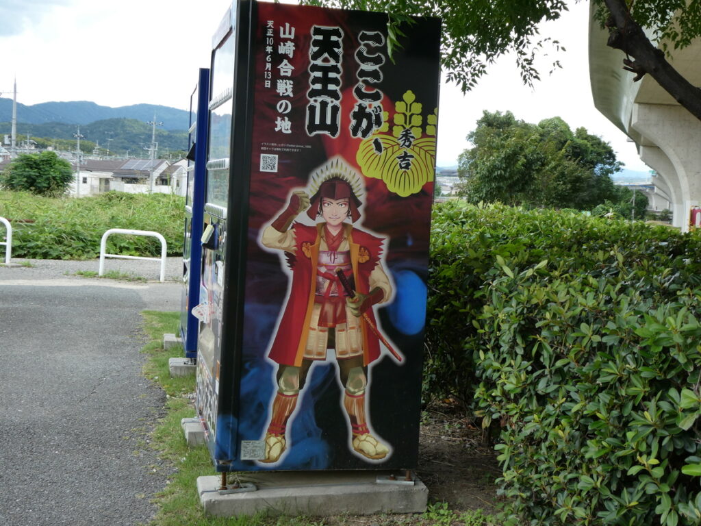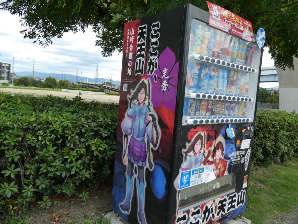 「山崎合戦の地」「天下分け目の天王山」などという物騒な文字が連なる。そこに紛れ、ケンタッキー・フライド・チキンのあの御馴染みのマークとハンバーガーの写真。その横には”15万名さまにバーガー当たる!”と印字され、現代の一見平和な世の中と「山崎合戦古戦場跡地」とのギャップの場違いさに、思考が一拍遅れる 。