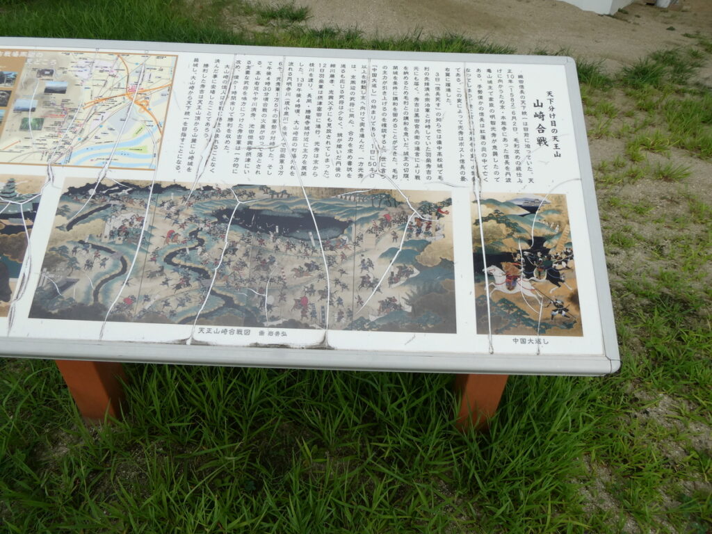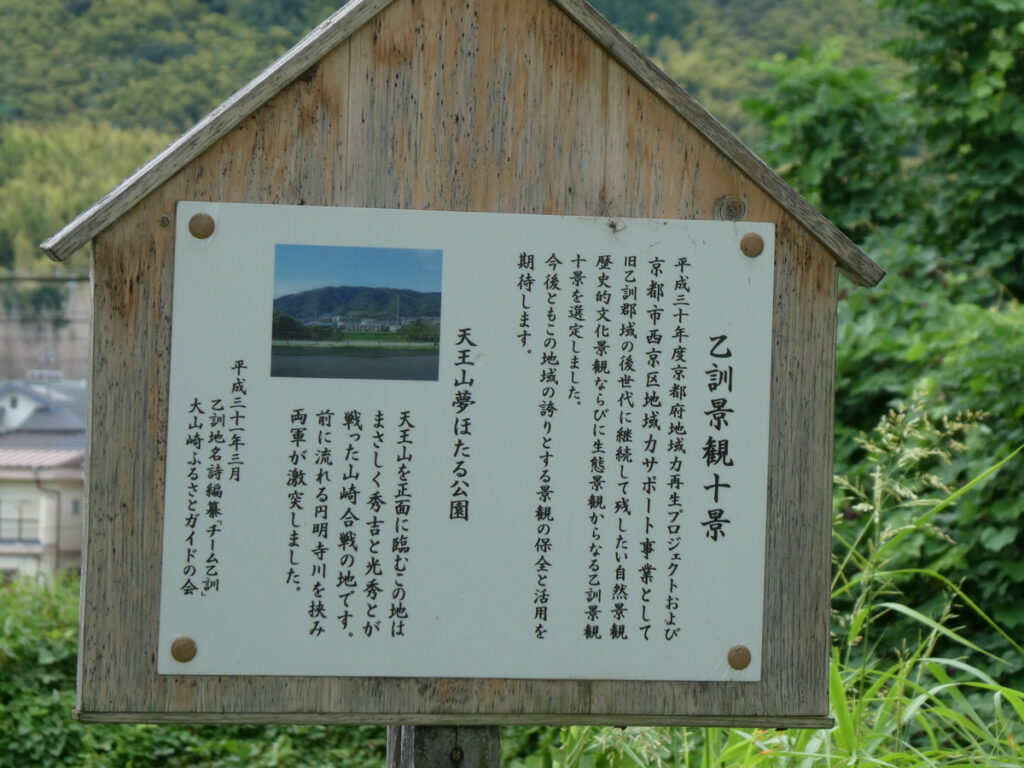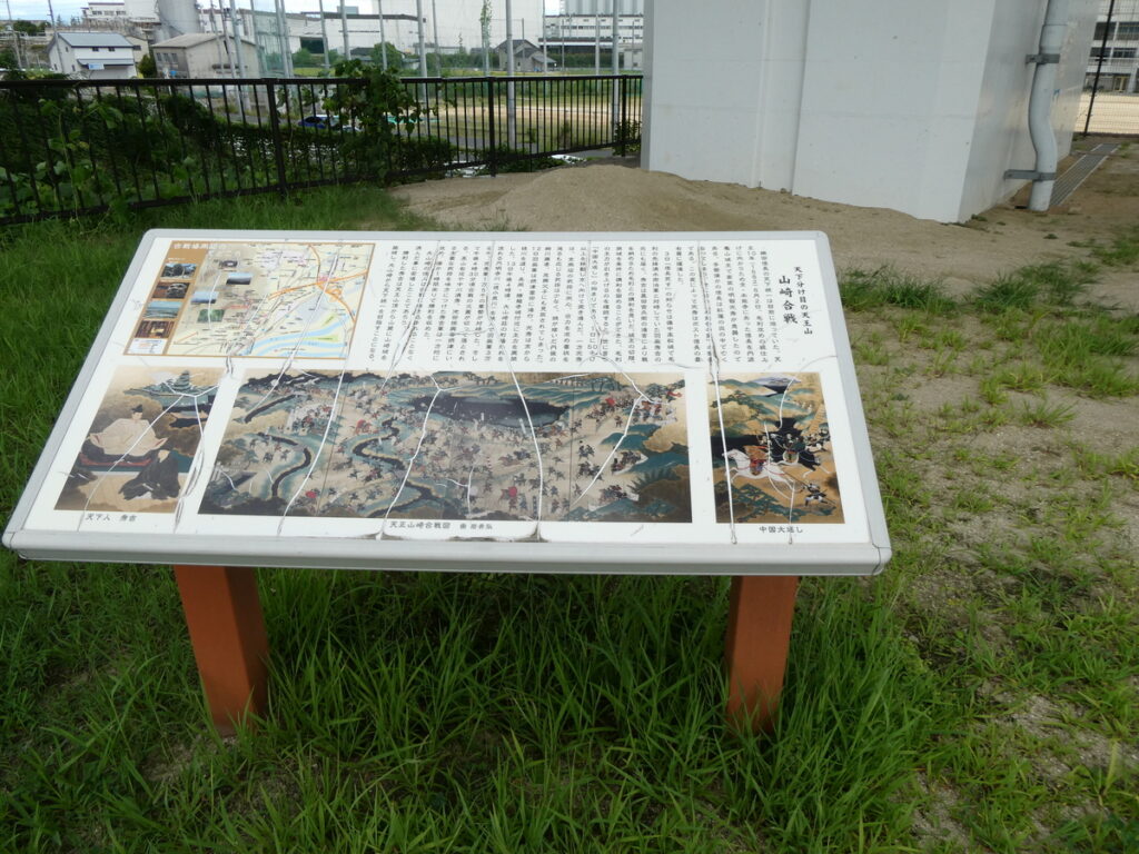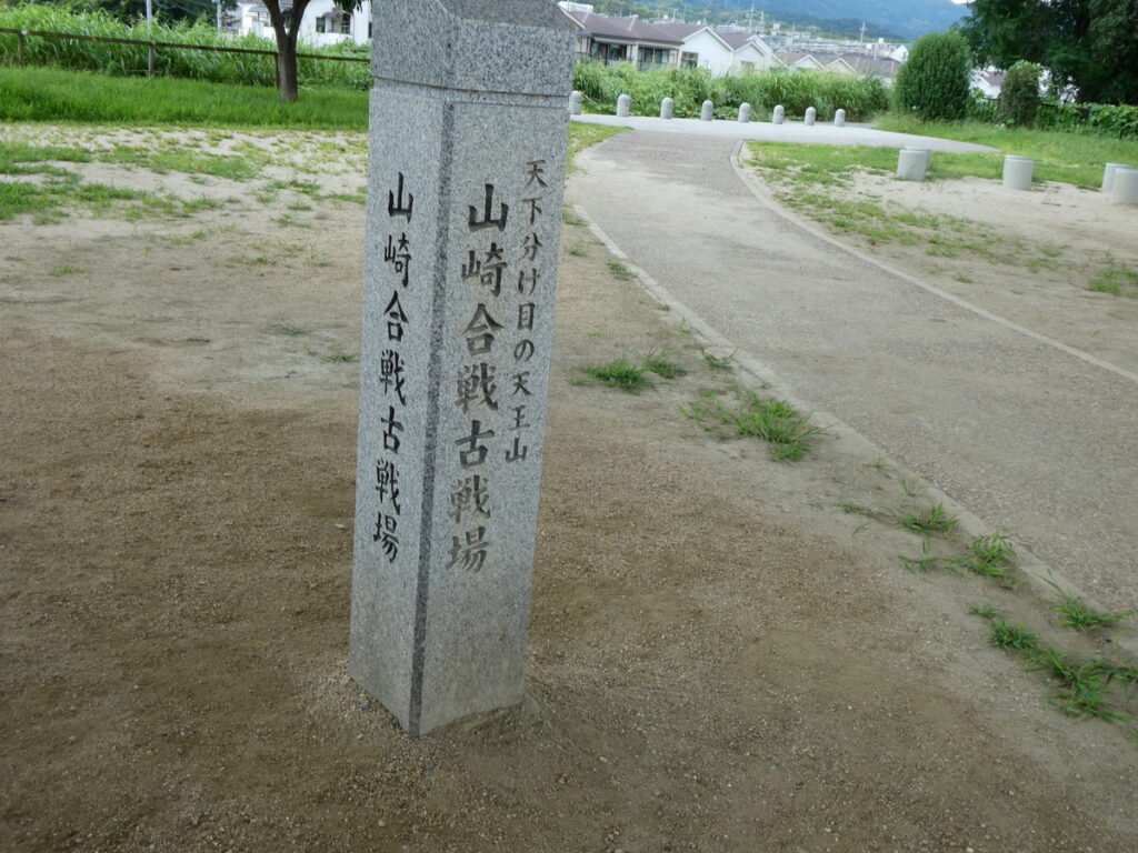 そう、この辺り一帯は、天正10年6月13日に山崎合戦が起こり光秀の運命を決めた古戦場跡地である。川を挟んだ向こうに見えるは天王山。